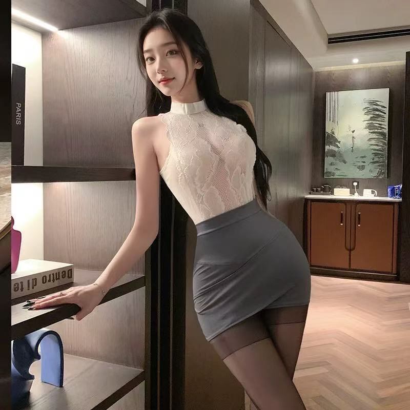 【即納】白×グレー 透け 美人教師 ol制服 秘書 セクシーコスプレ【 #[5046_11000]】【送料込み】【251210】