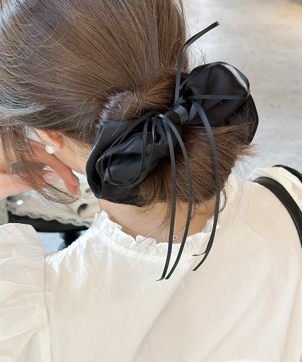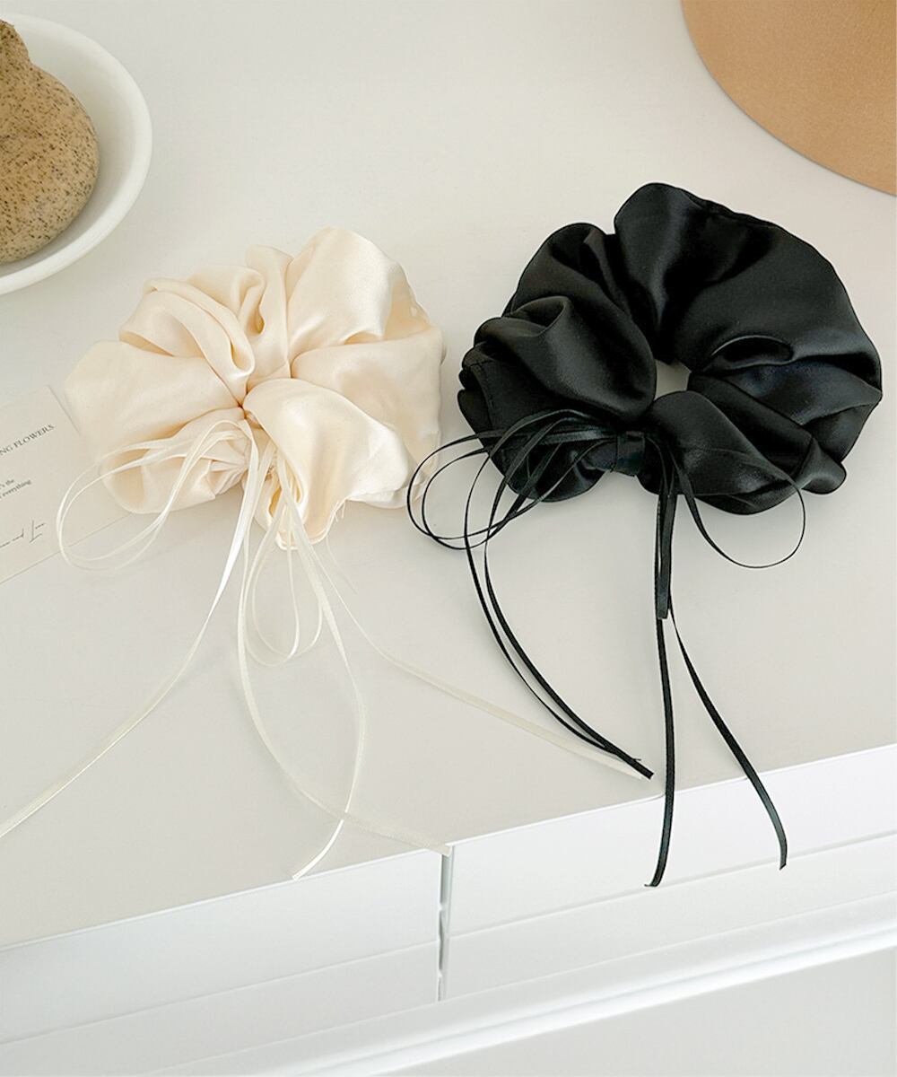サテン素材のリボンシュシュ。