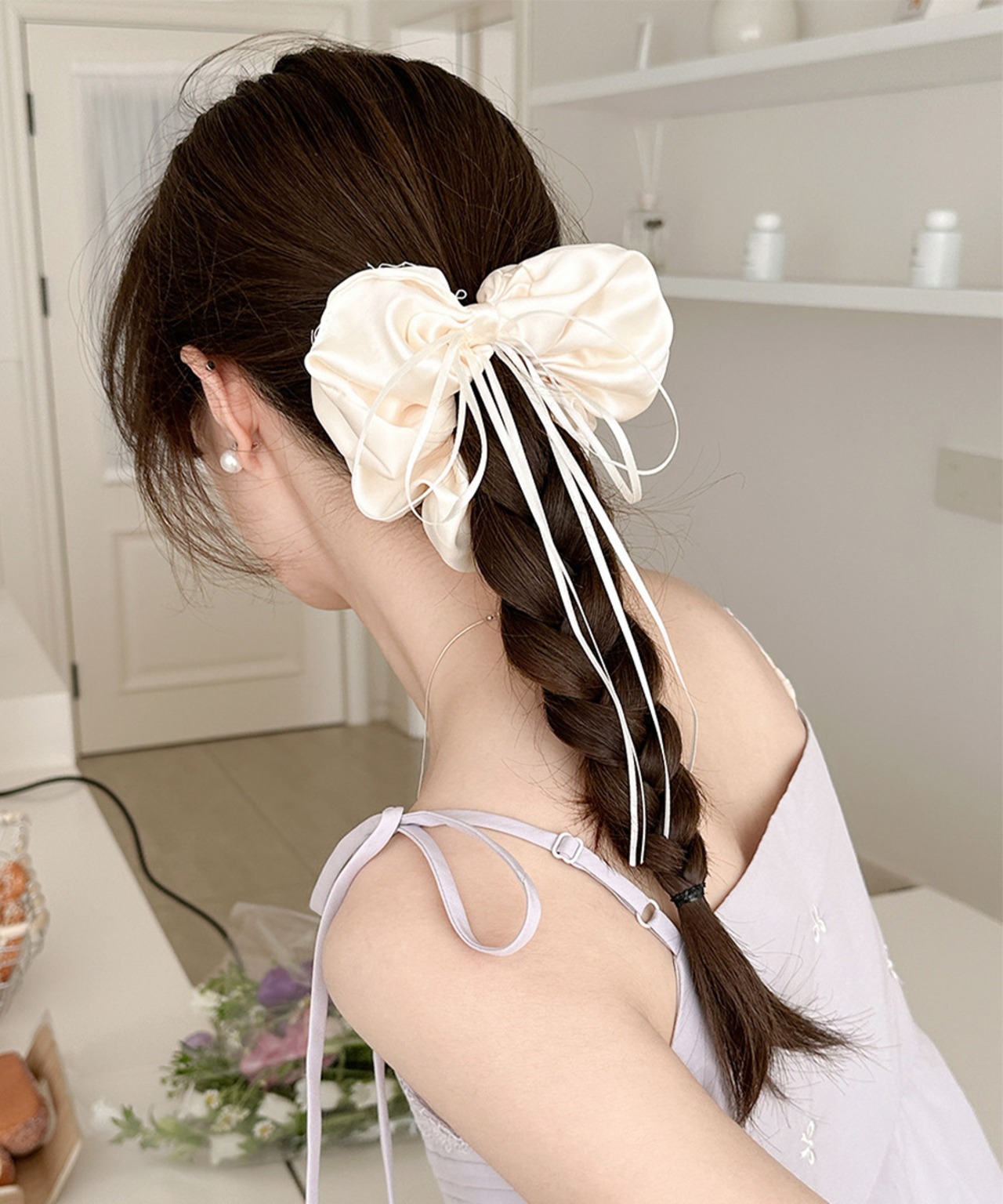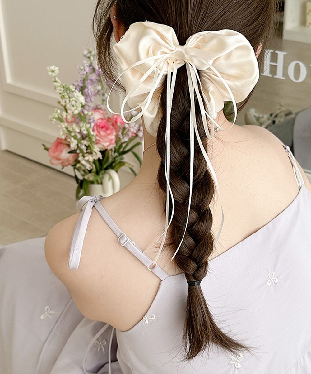 細めのリボンがついているので、編み込みやアレンジヘアにもぴったり。