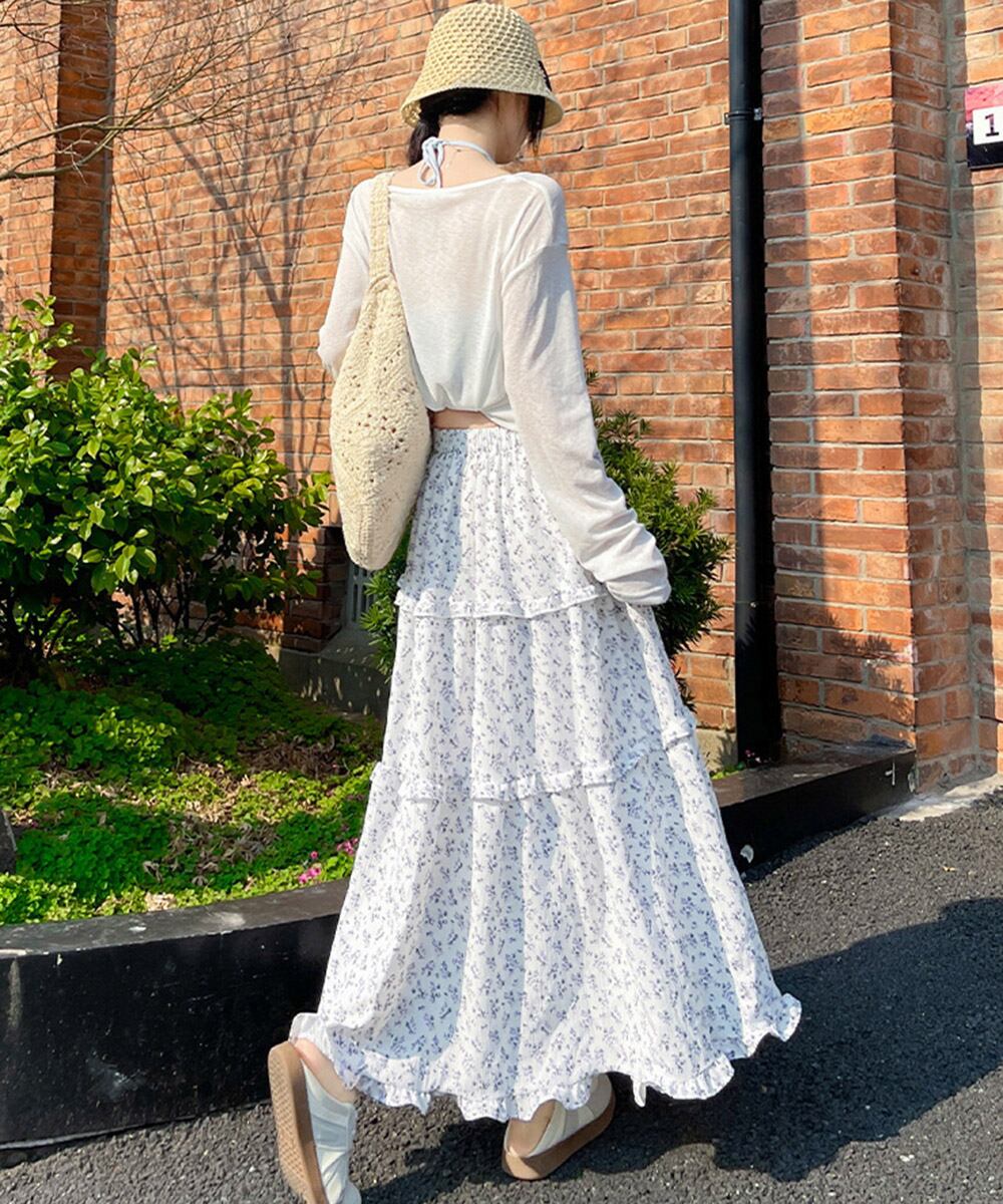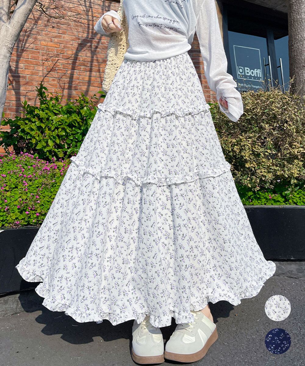 【日本倉庫からの発送】 フリルティアード 小花柄 ロングスカート #[98JLIY-001_21900]【送料込み】【250829】