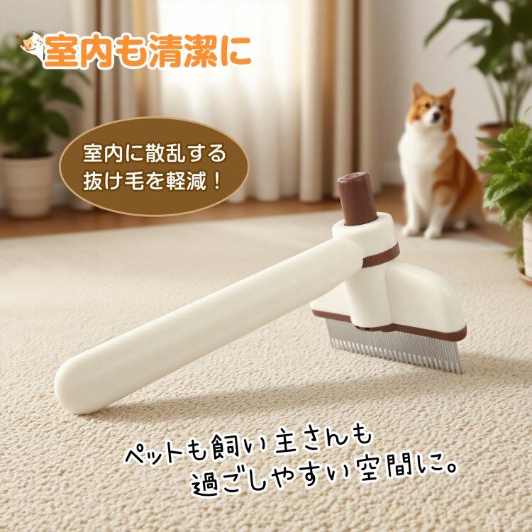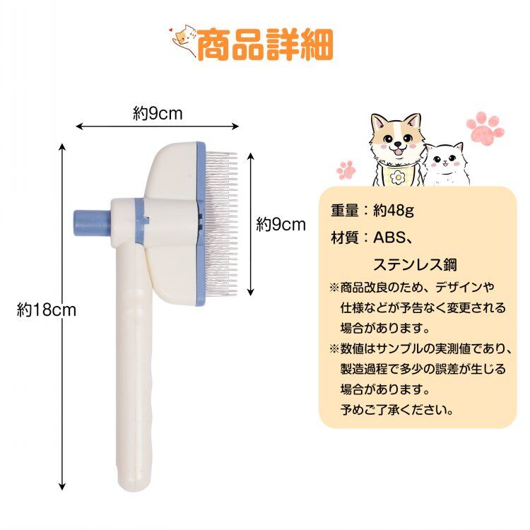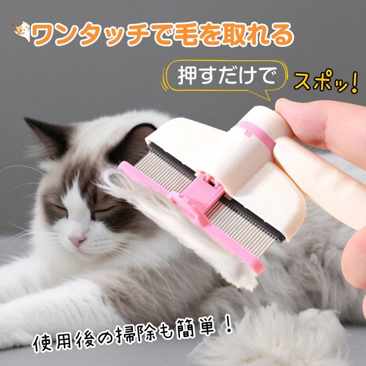 ペットブラシ 犬猫兼用 猫ブラシ 犬ブラシ 抜け毛が取れる ワンプッシュ 簡単 抜け毛除去ボタン #[tkpt001_6400]【送料込み】【250822】