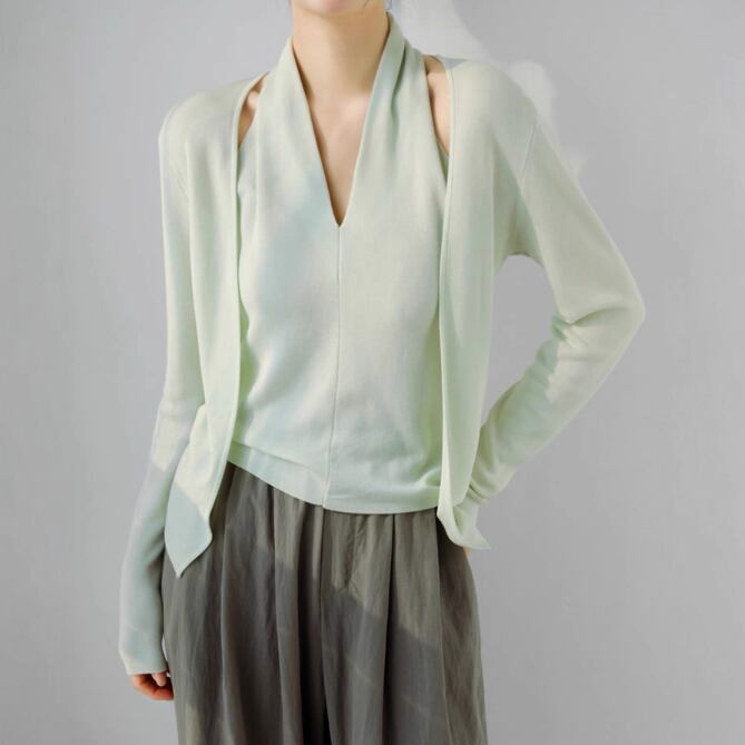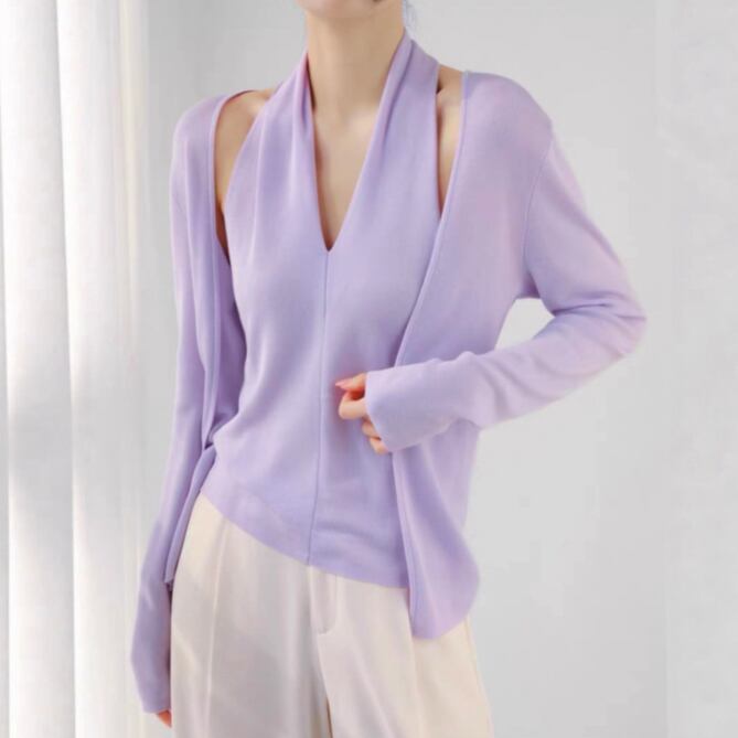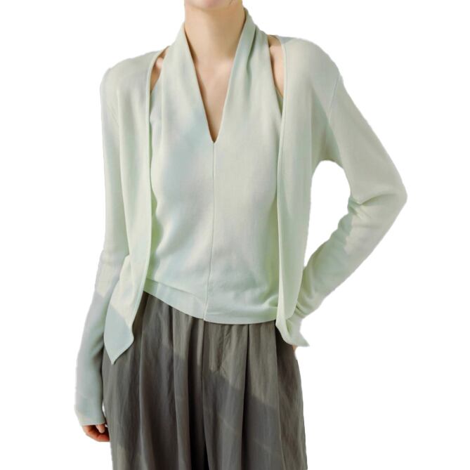 【海外からの取り寄せ】2025秋新作 カーディガン ニット トップス 長袖 魅惑的 ホルターネック きれいめ 上品 綺麗 2点セット #[cardigan214_13800]【送料込み】【250829】