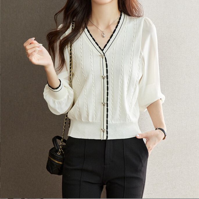 【海外からの取り寄せ】2025秋新作 カーディガン ニット トップス 肩フリル シフォン ボリューム袖 きれいめ やわらか #[cardigan213_12800]【送料込み】【250829】