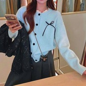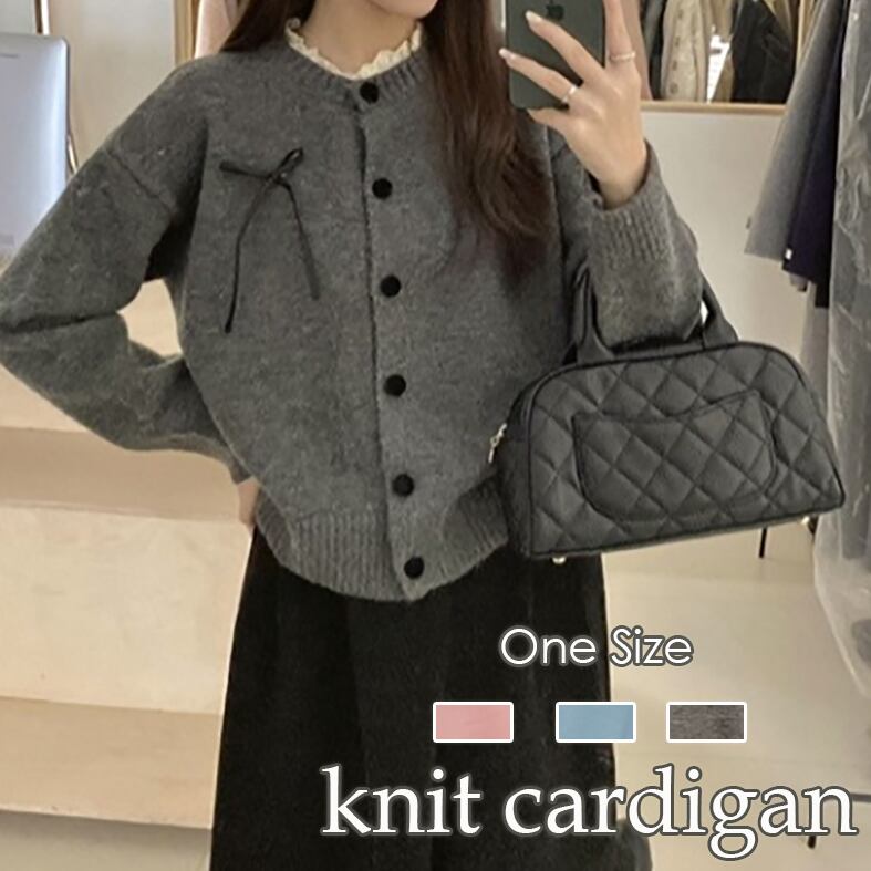 【海外からの取り寄せ】 2025新作 ラウンドネック ニットカーディガン トップス シンプル 無地 リボン #[cardigan212_14800]【送料込み】【250826】