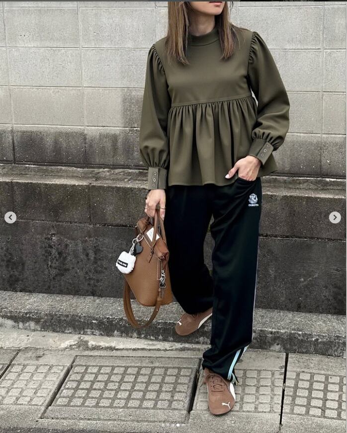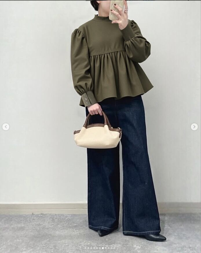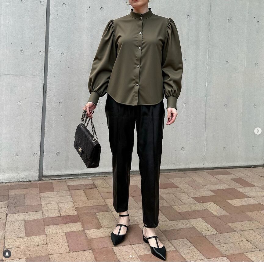 ・落ち感のあるつるんとした生地が大人シルエットを描きます。