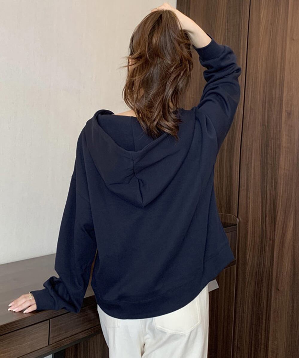 秋パーカーゆったり ジョギングウェア女 ドロップショルダー