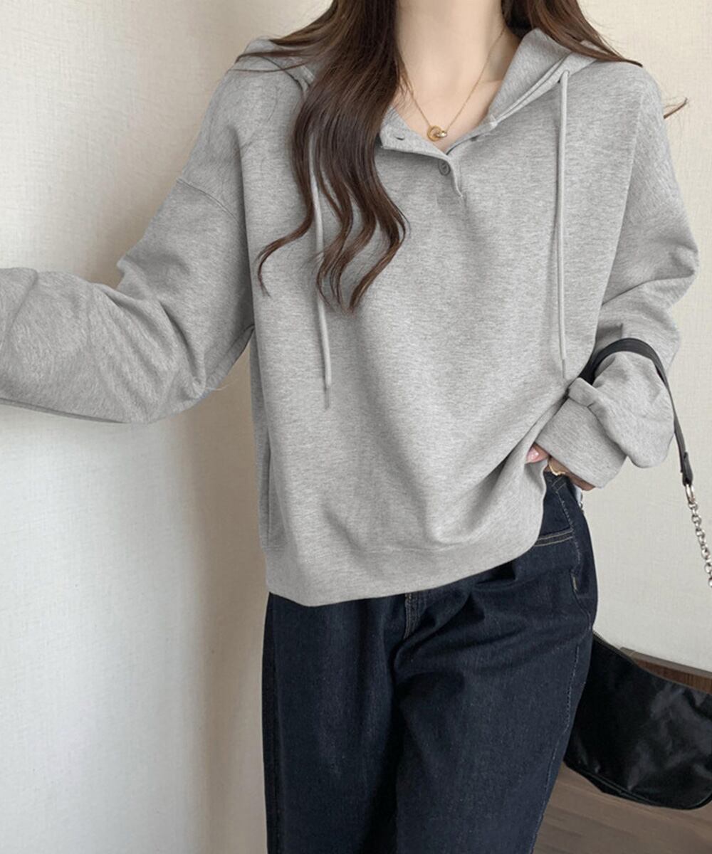 フード付き×長袖のカジュアルスタイルで、春秋にぴったりの軽やかな着心地。