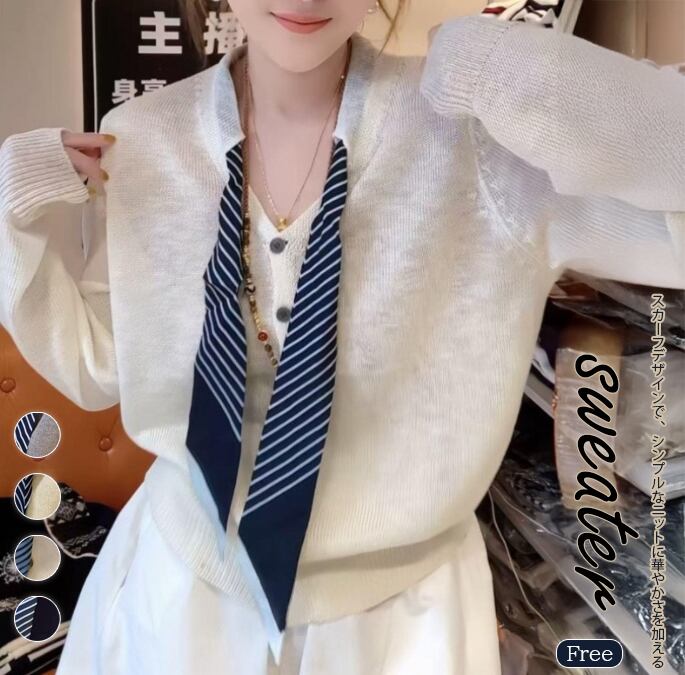 【海外からの取り寄せ】2025秋冬新作 レディース スカーフ風 ラウンドネック セーター ニット トップス おしゃれ 無地 #[tops688_19800]【送料込み】【250905】