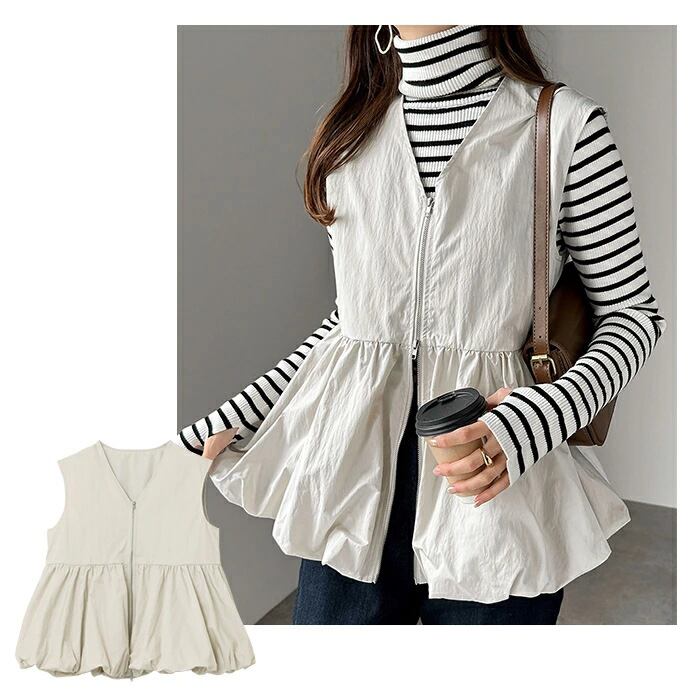 【海外からの取り寄せ】 2025新作 レディース ジップ ベスト レイヤード アウター 羽織り 体型カバー ジレ おしゃれ #[tops684_24800]【送料込み】【250905】