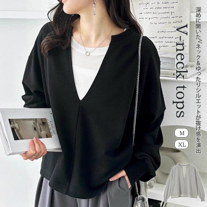 深めに開いたVネック&ゆったりシルエットが抜け感を演出 トップス