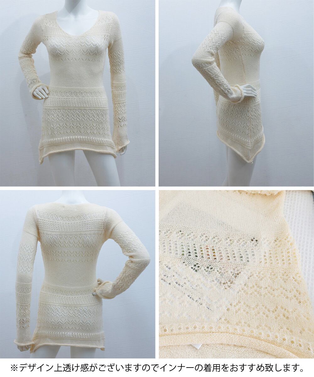 レディースニットワンピースミニ丈 きれいめワンピース透け感 大人可愛いチュニックワンピース長袖 おしゃれワンピース着やせ