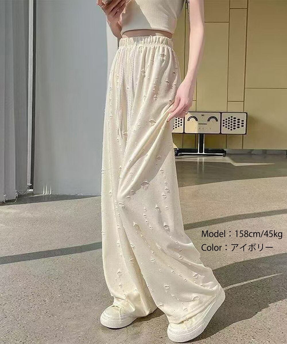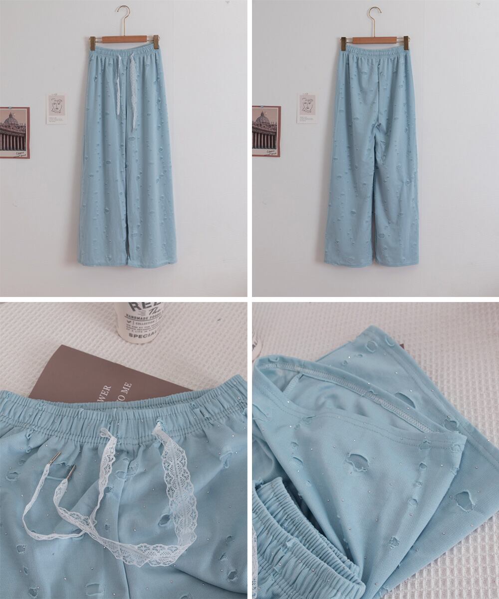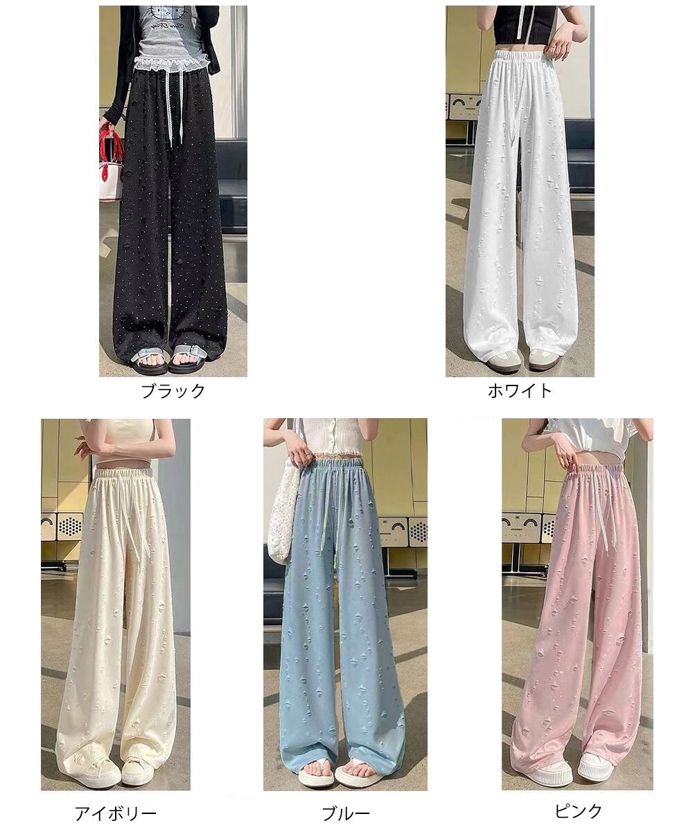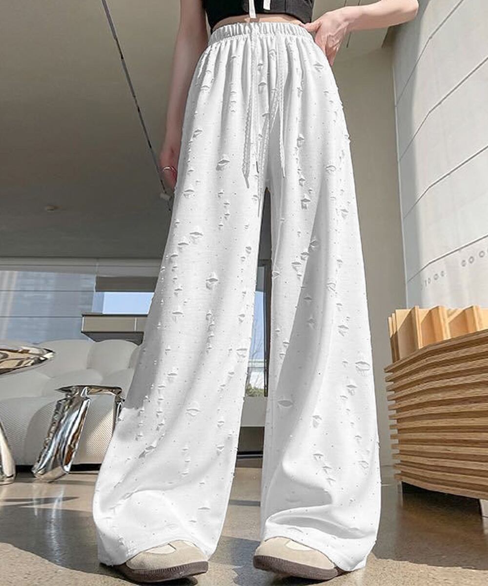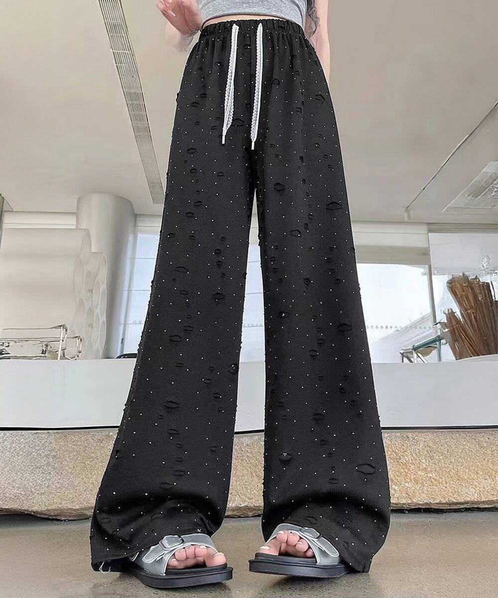 【日本倉庫からの発送】 キラキラビジューワイドパンツダメージ加工 #[97KZ-004_15600]【送料込み】【250829】