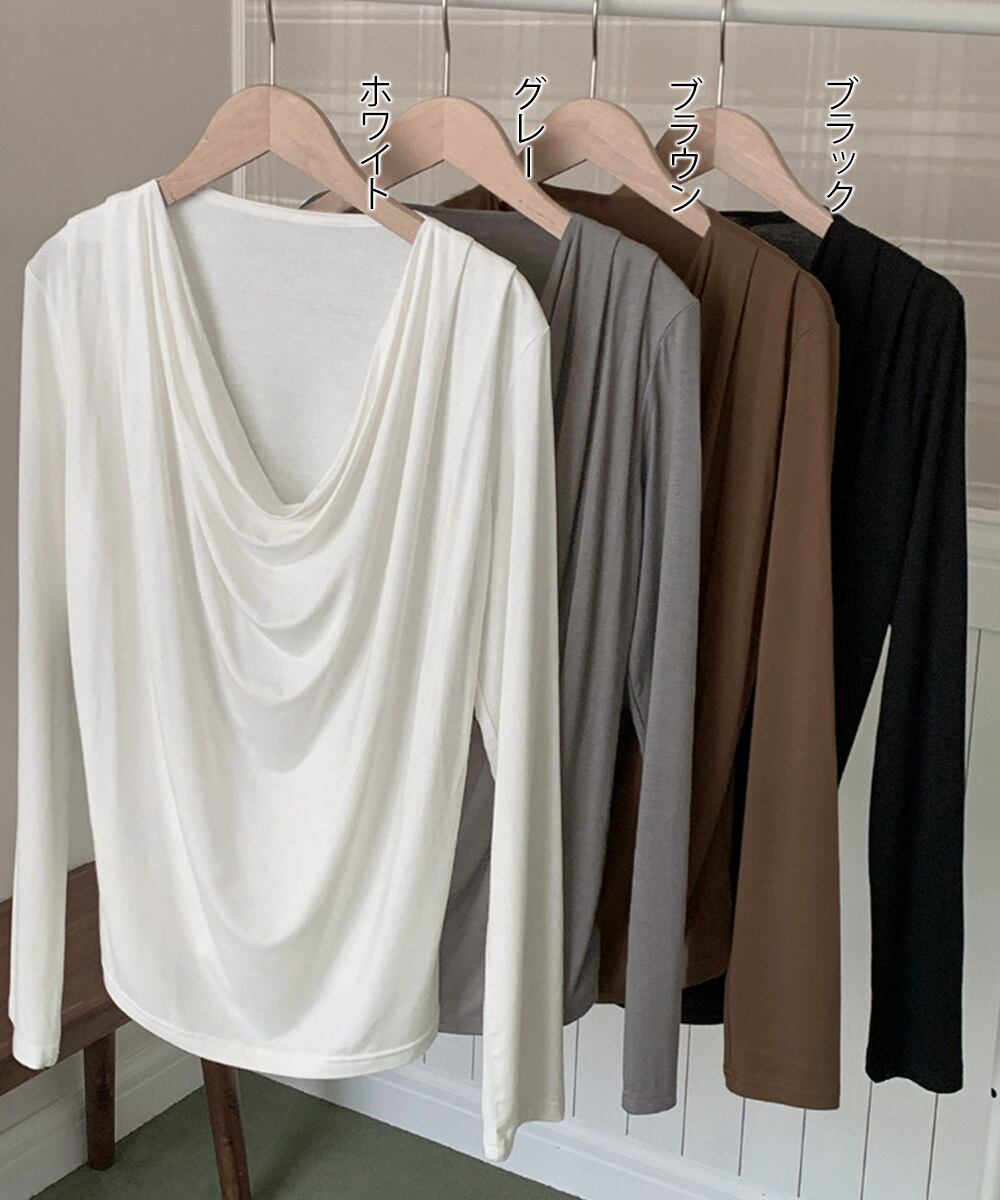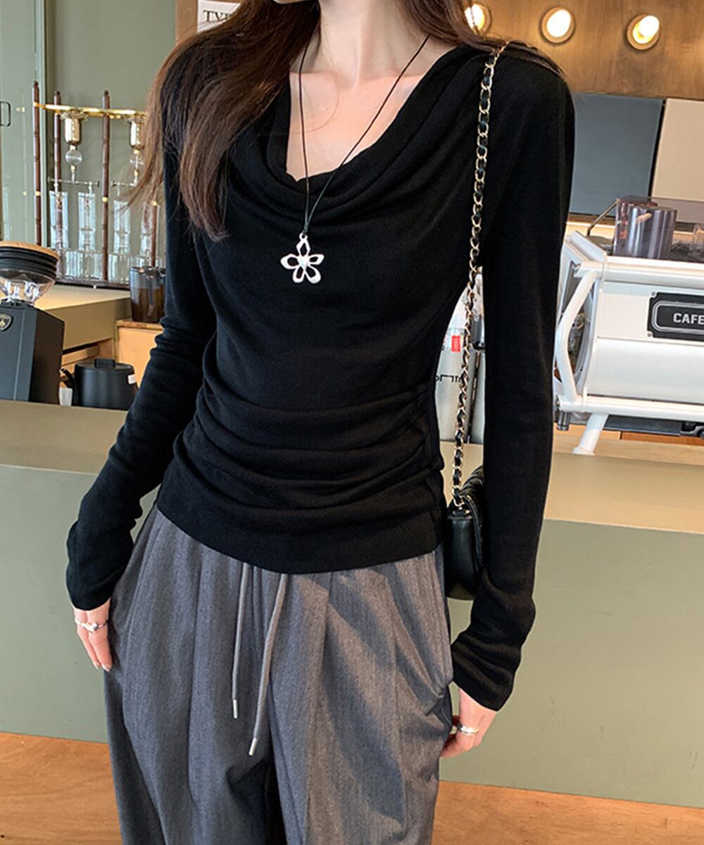 【日本倉庫からの発送】 ドレープネックTシャツ 長袖トップス春秋 #[92JILAI-001_23100]【送料込み】【260115】