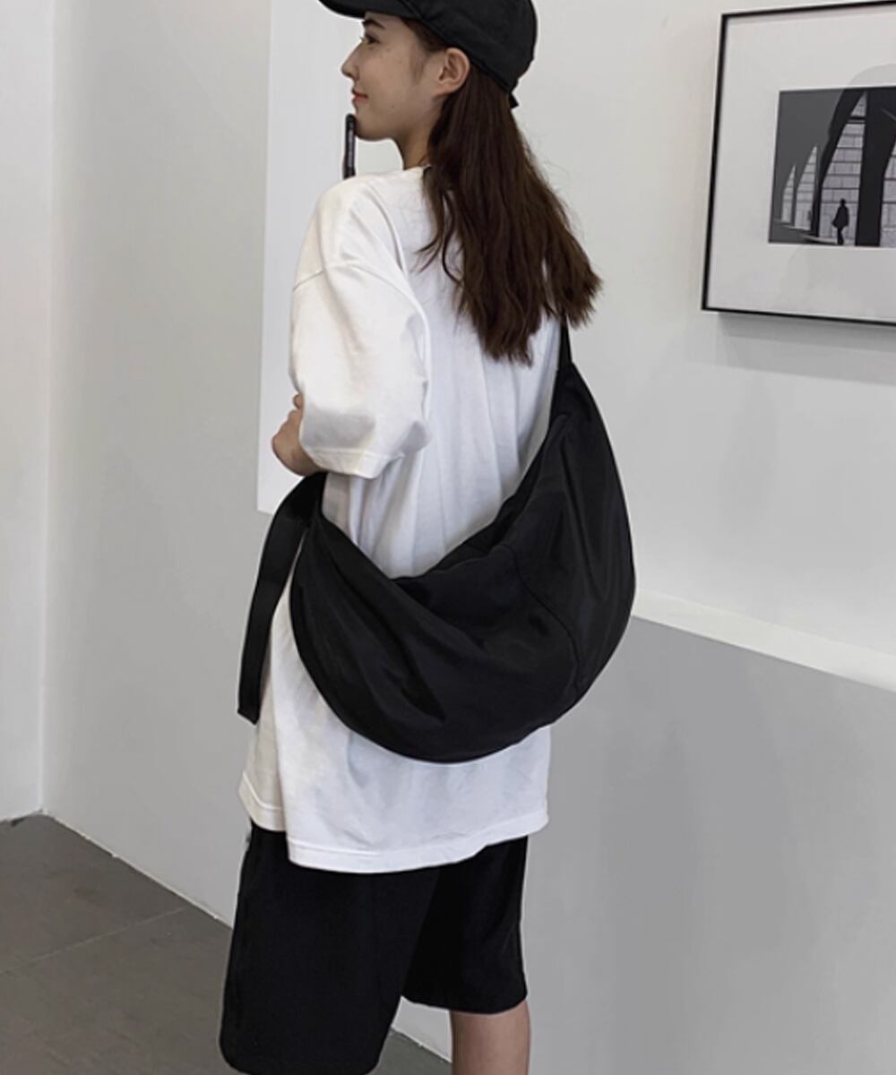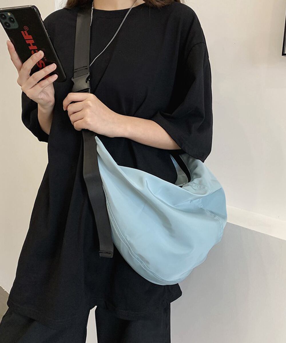 丸みを帯びたデザインが身体にフィットし、肩掛け・斜め掛けの両方に対応。