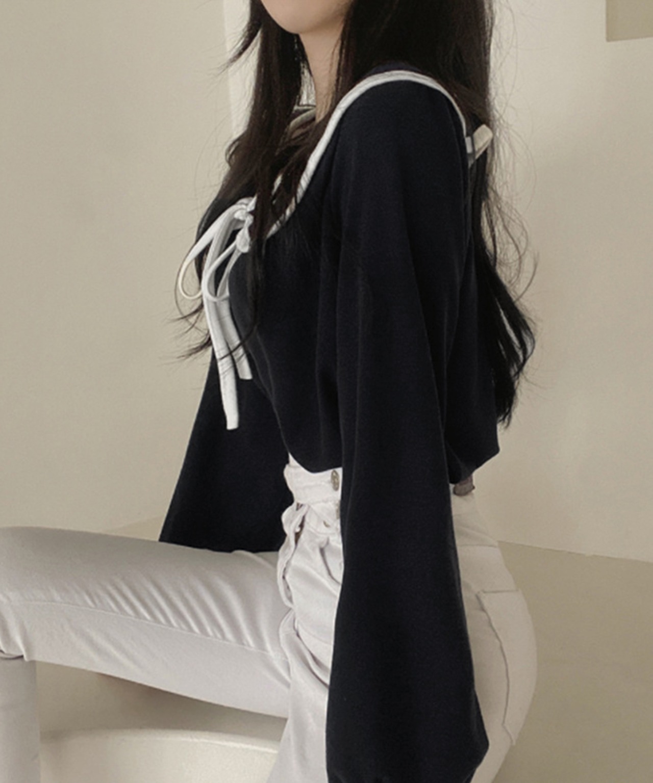 レディース バイカラーシャツブラウス フレンチガーリー 大きめ襟トップス ゆったり韓国ファッション 着やせ 体型カバー