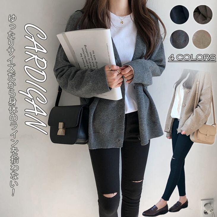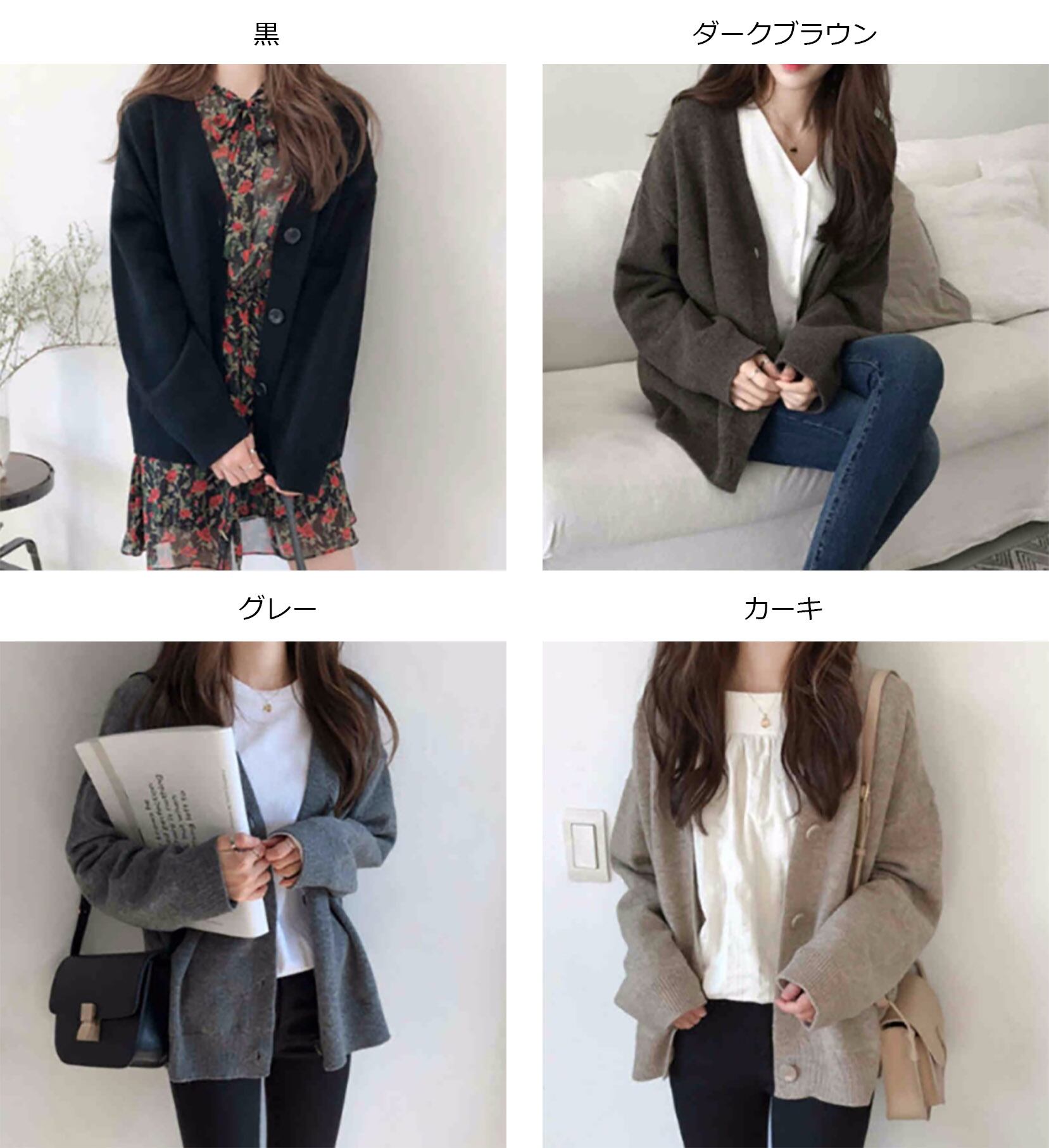 秋冬定番アイテムのニットカーディガンは程よい丈感でスカートやワンピ、ジーンズにも合わせやすいです。