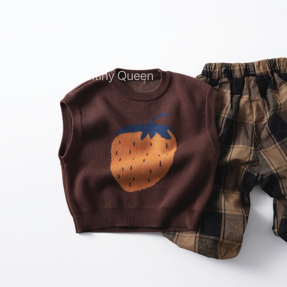 【海外からの取り寄せ】2025秋新作 子供服 ニット ベスト 韓国風子供服 男女兼用 ジャカード トップス チョッキ イチゴ #[ckd1095112_15900]【送料込み】【250918】