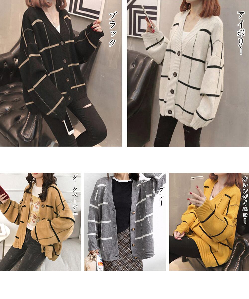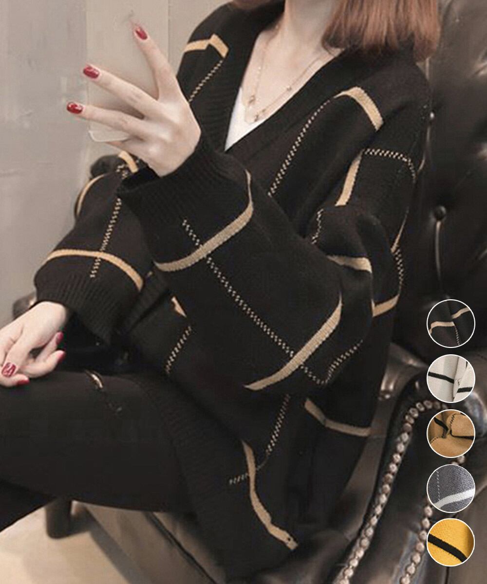 【日本倉庫からの発送】 ニットカーディガン BIGチェック柄秋冬 #[84DLV-003_24600]【送料込み】【250904】