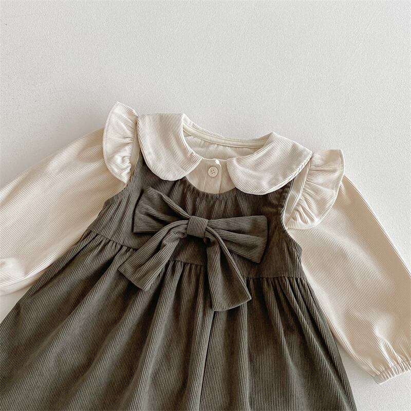 【海外からの取り寄せ】2025秋新作 子供服 セットアップ コーデュロイ リボン ジャンパースカート シャツ 可愛い おしゃれ #[ckd1095155_23500]【送料込み】【250921】