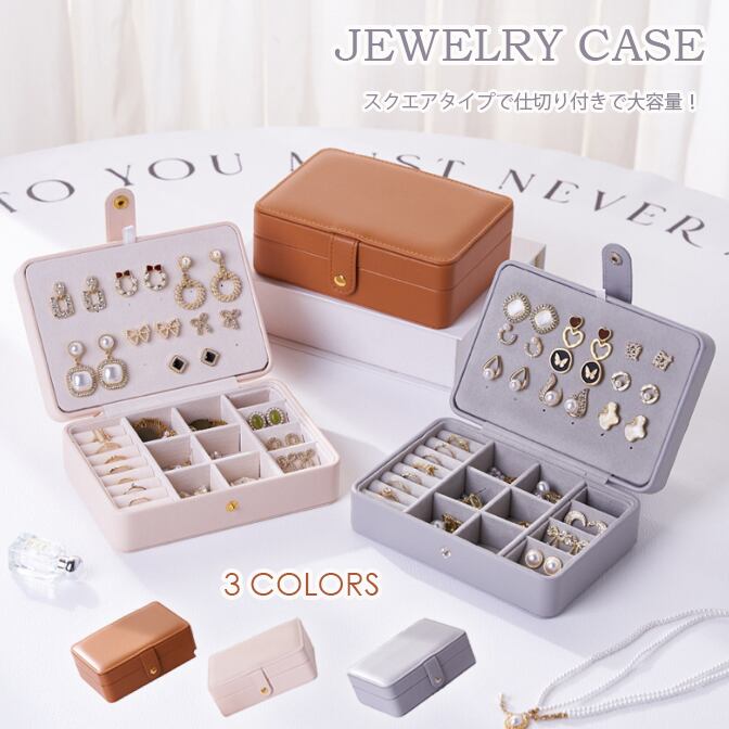 スクエアデザインの仕切り付きで大容量!持ち運びにも便利◎ ジュエリーケース