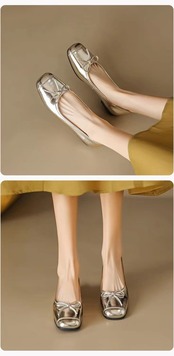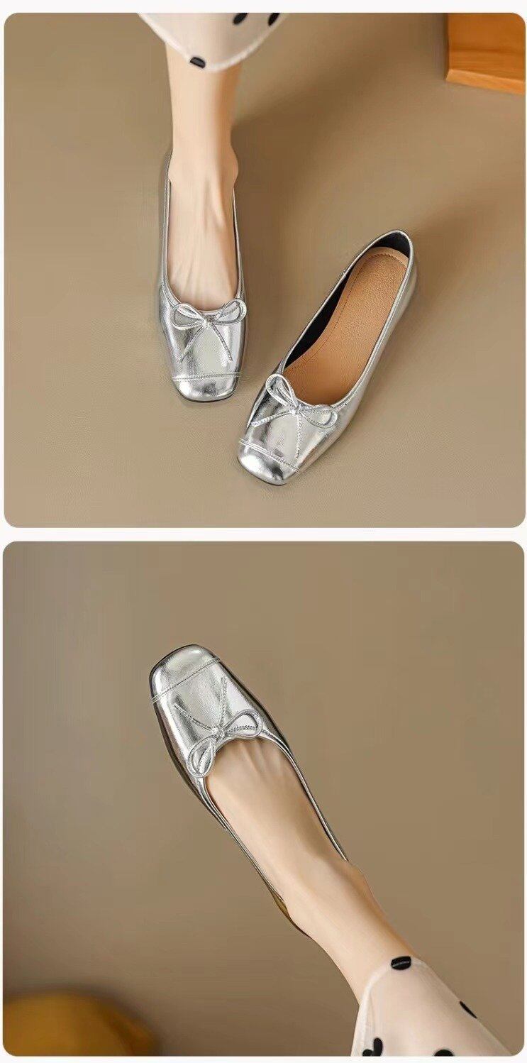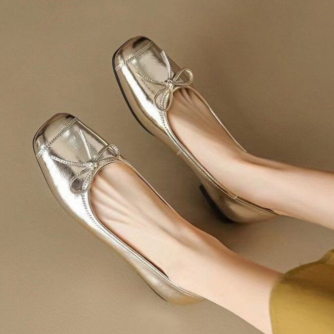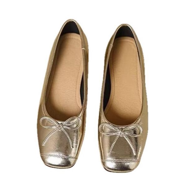 【海外からの取り寄せ】 新作 レディース パンプス ツヤ感 リボン飾り ローヒール スクエアトゥ バレエコアデザイン #[pumps359_16800]【送料込み】【250917】