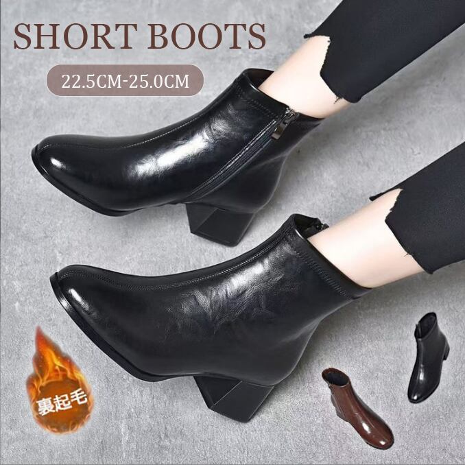 【海外からの取り寄せ】 2025秋冬 ブーツ 靴 ショートブーツ 裏起毛 黒 スタイルアップ チャンキーヒール 脚長 #[boots376_26800]【送料込み】【250912】