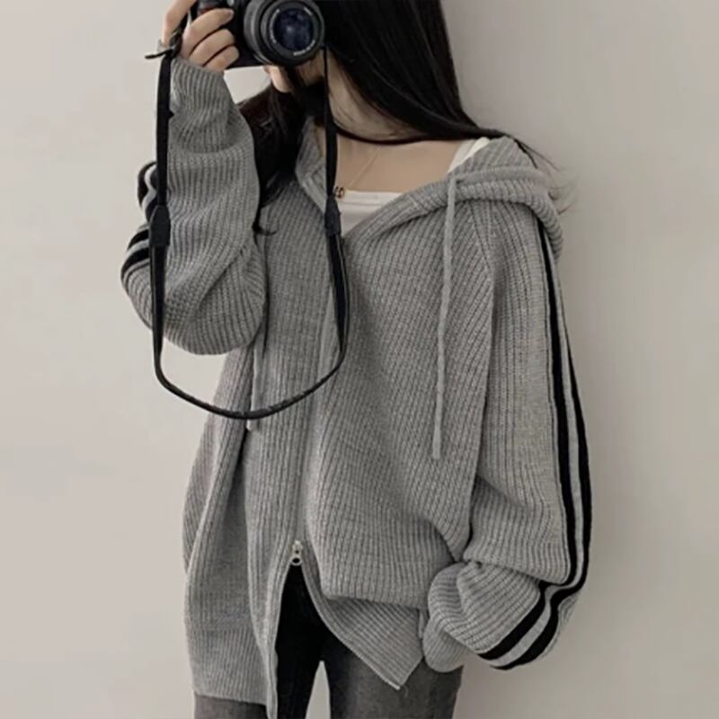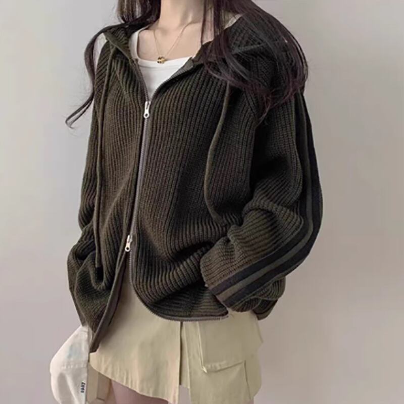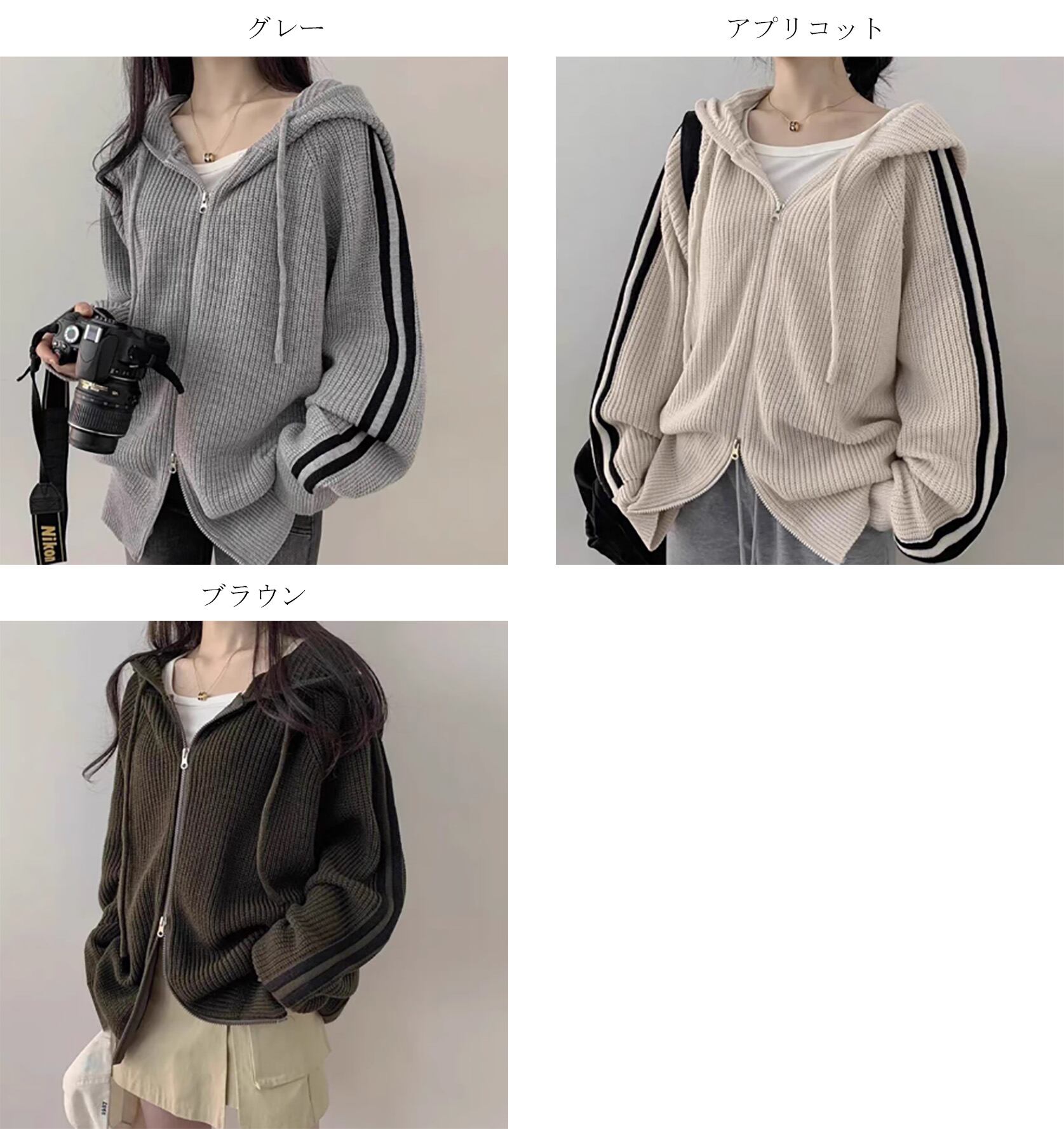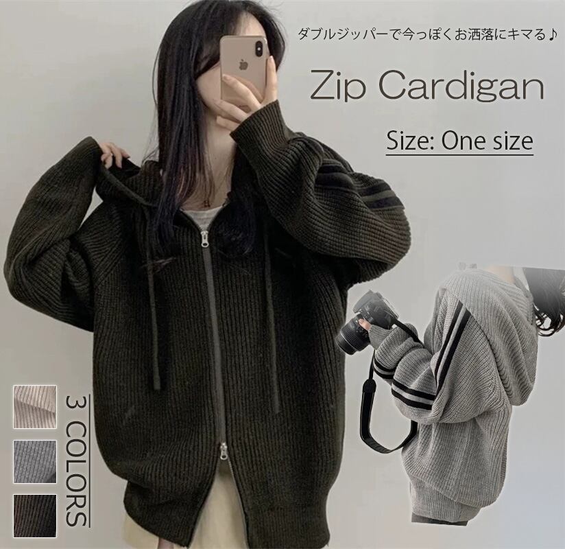 【海外からの取り寄せ】 2025新作 フード付き ニット カーディガン トップス Wジップ 春 秋 冬 ゆったり カジュアル #[cardigan217_21800]【送料込み】【250912】