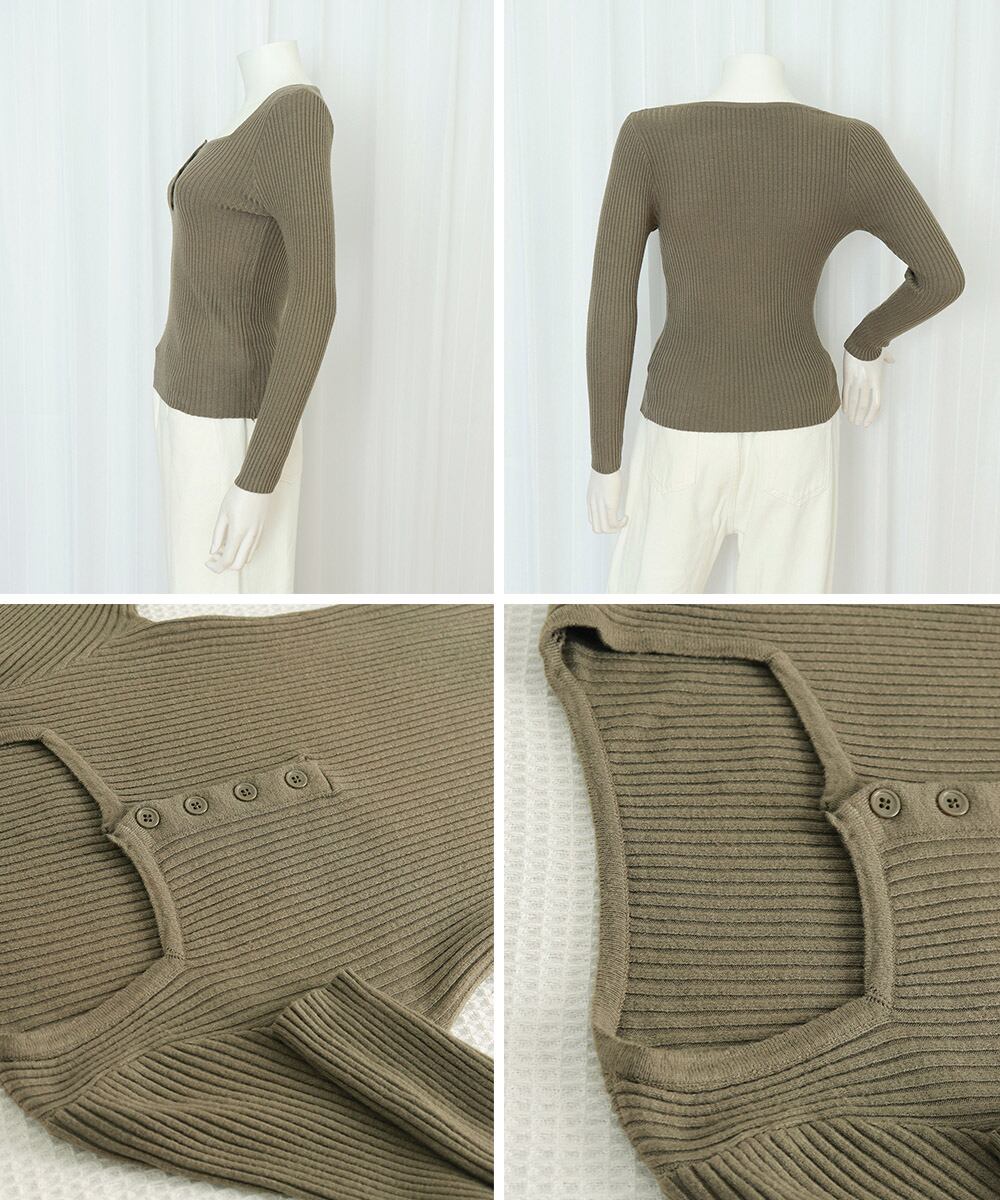 レディース ニットインナー リブニット セーター ボタン飾り シンプル 大人 きれいめ エレガント 通勤 春秋冬 着回し