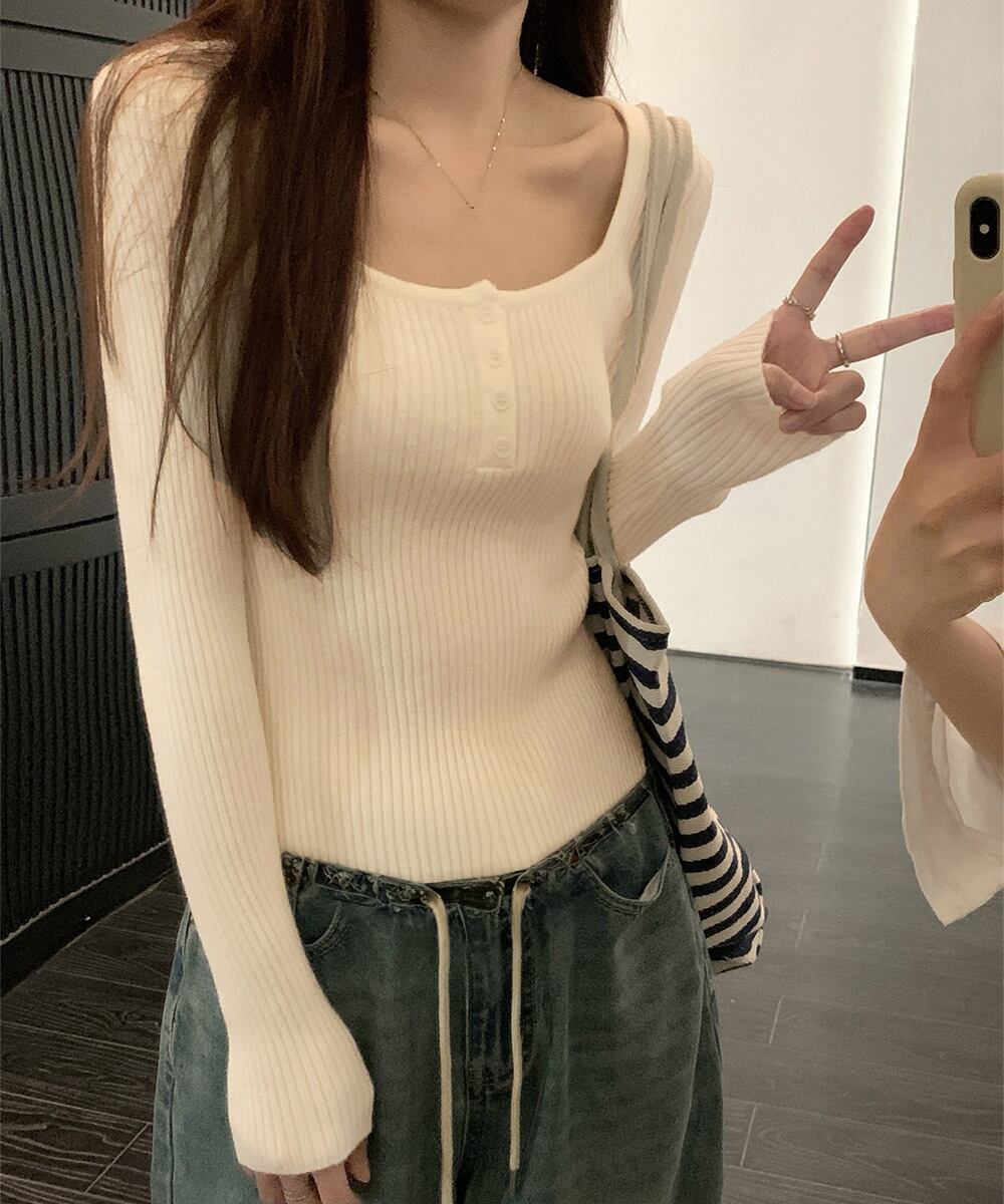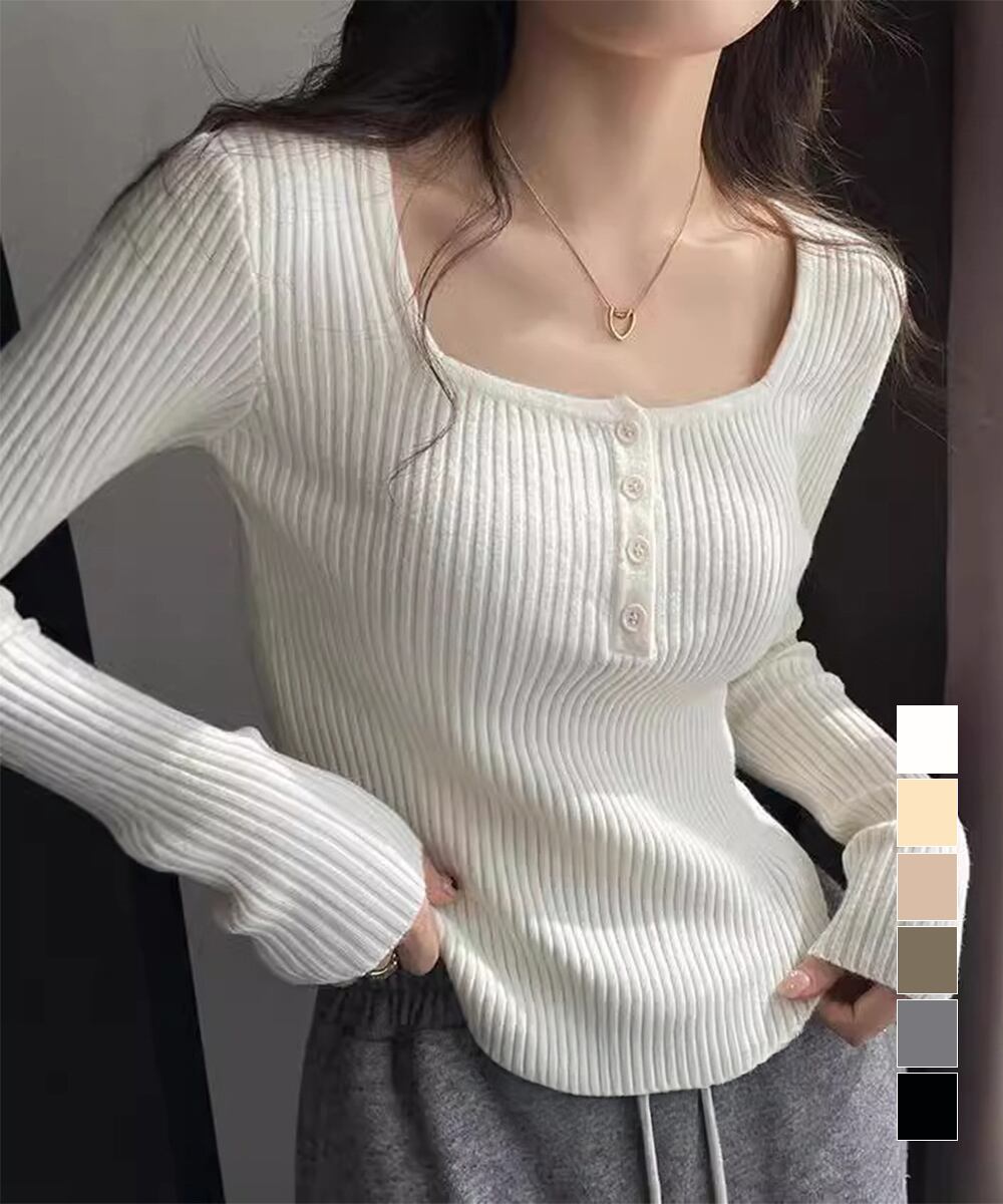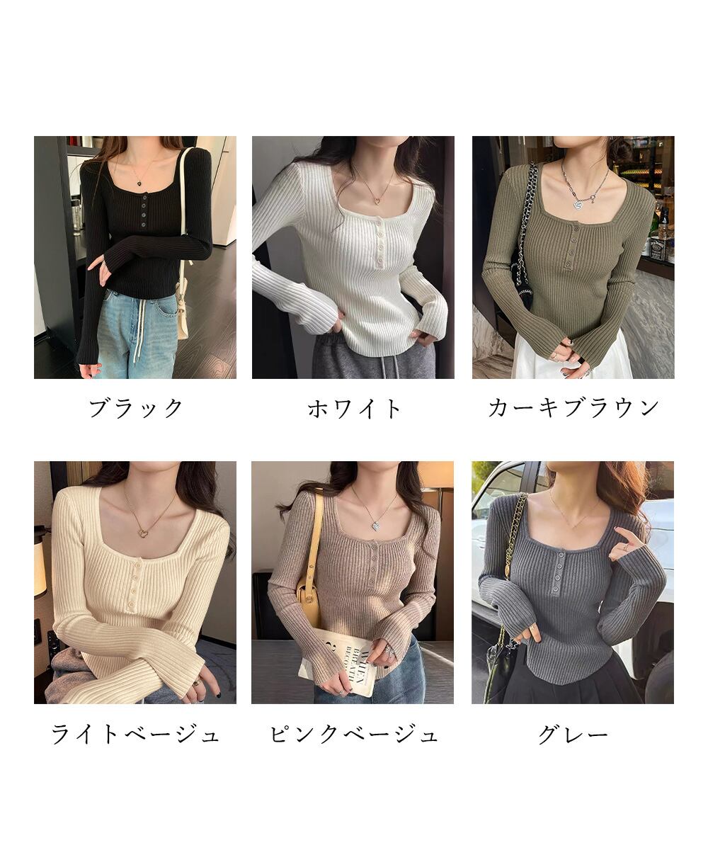 【日本倉庫からの発送】 ニットトップス スクエアネック 無地 #[99SEL-001_17600]【送料込み】【260115】
