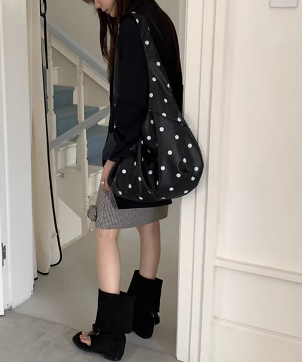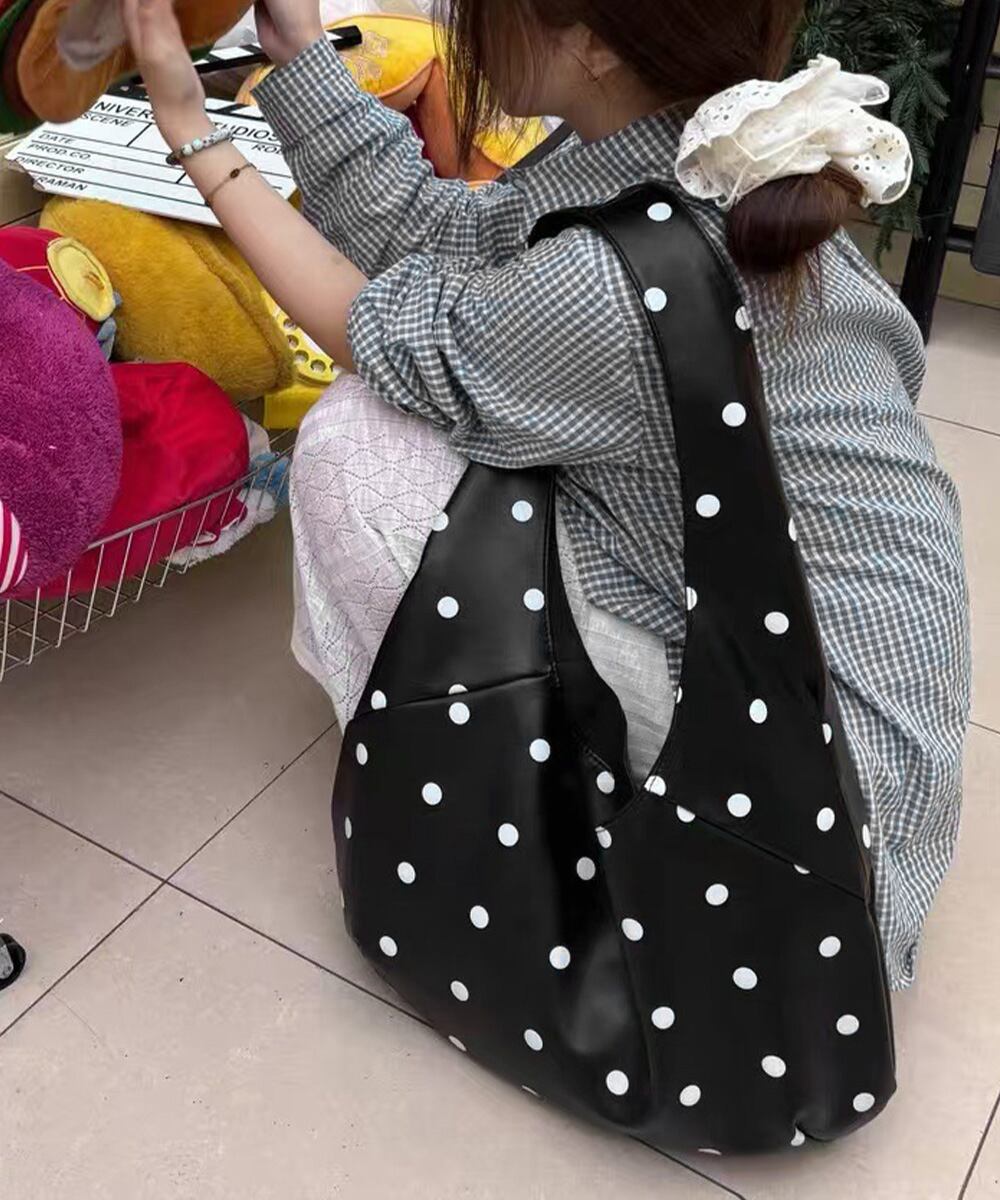 【日本倉庫からの発送】 PUホーボーバッグ ドット柄肩掛けバッグ #[92LL-001_20800]【送料込み】【250921】
