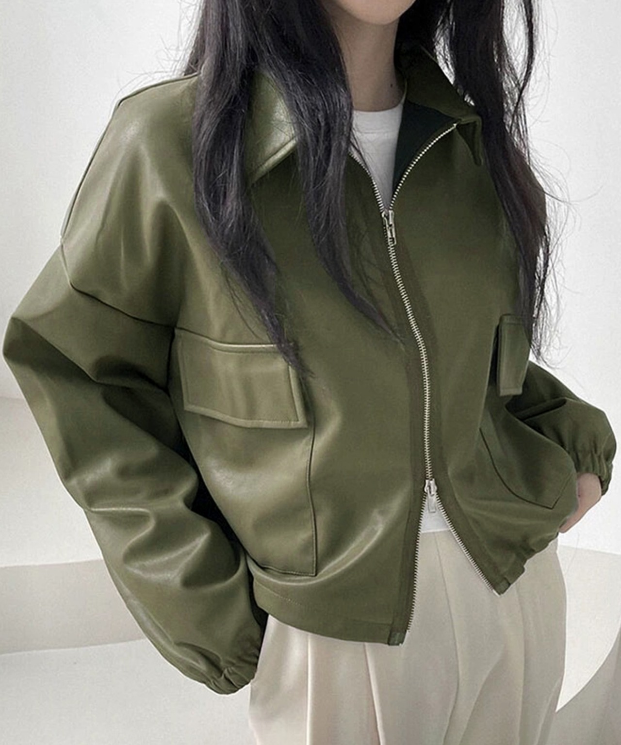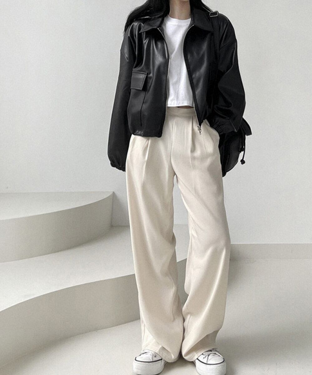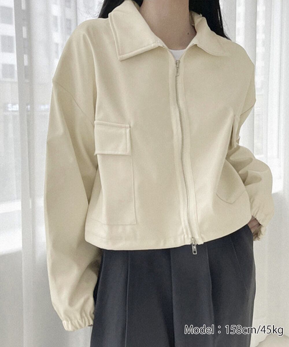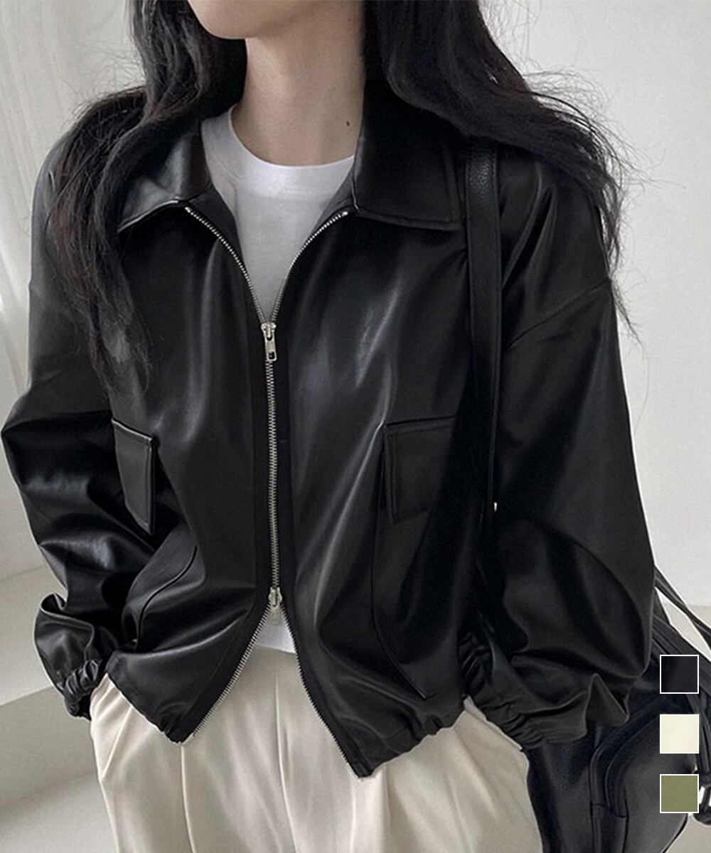 韓国っぽさ漂う、秋冬にぴったりなレトロデザインの折り襟PUレザーブルゾン。