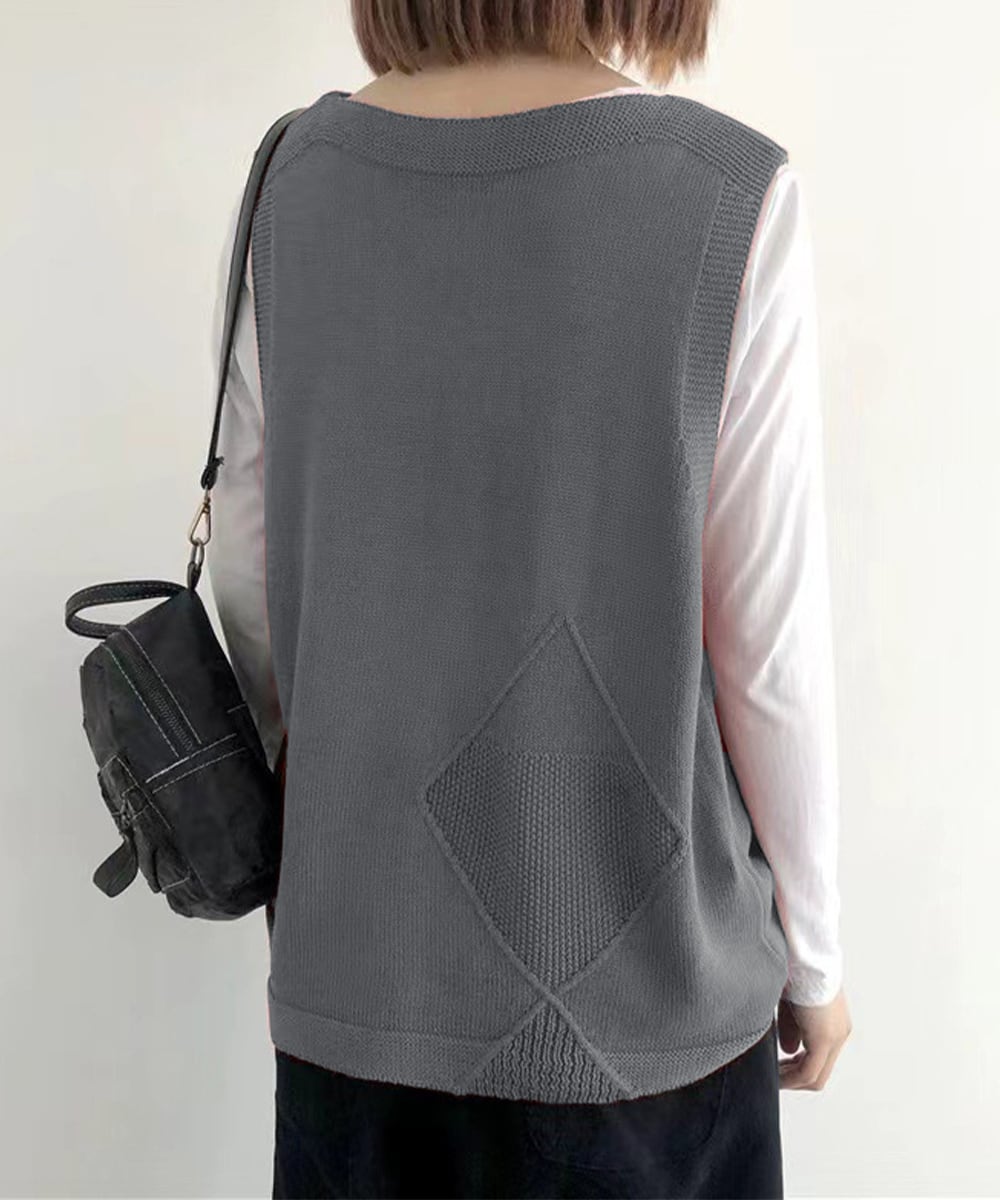 無地ニットチョッキ 重ね着 ニット羽織 着やせニット春秋冬