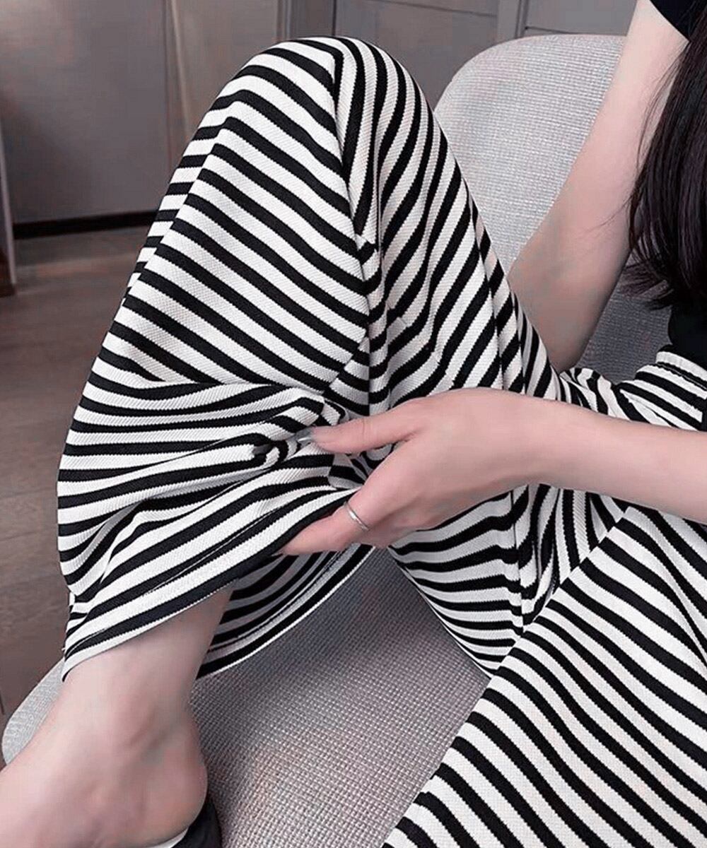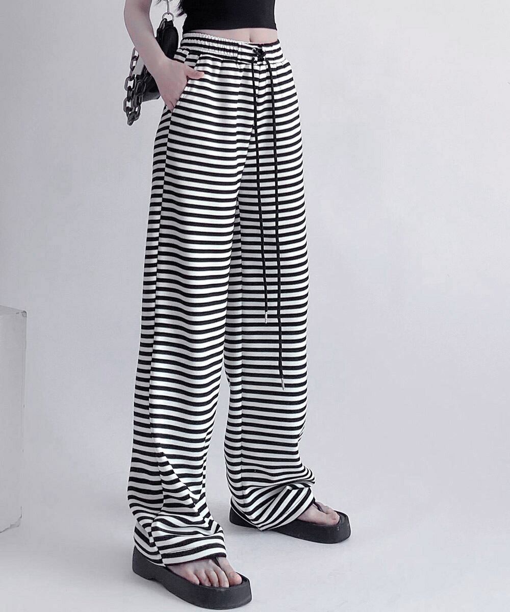 【日本倉庫からの発送】 リラックスボーダーパンツウエスト紐韓国風 #[21KUZI-023_24400]【送料込み】【250921】