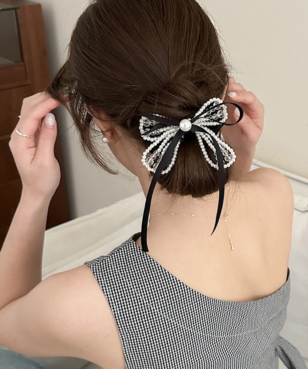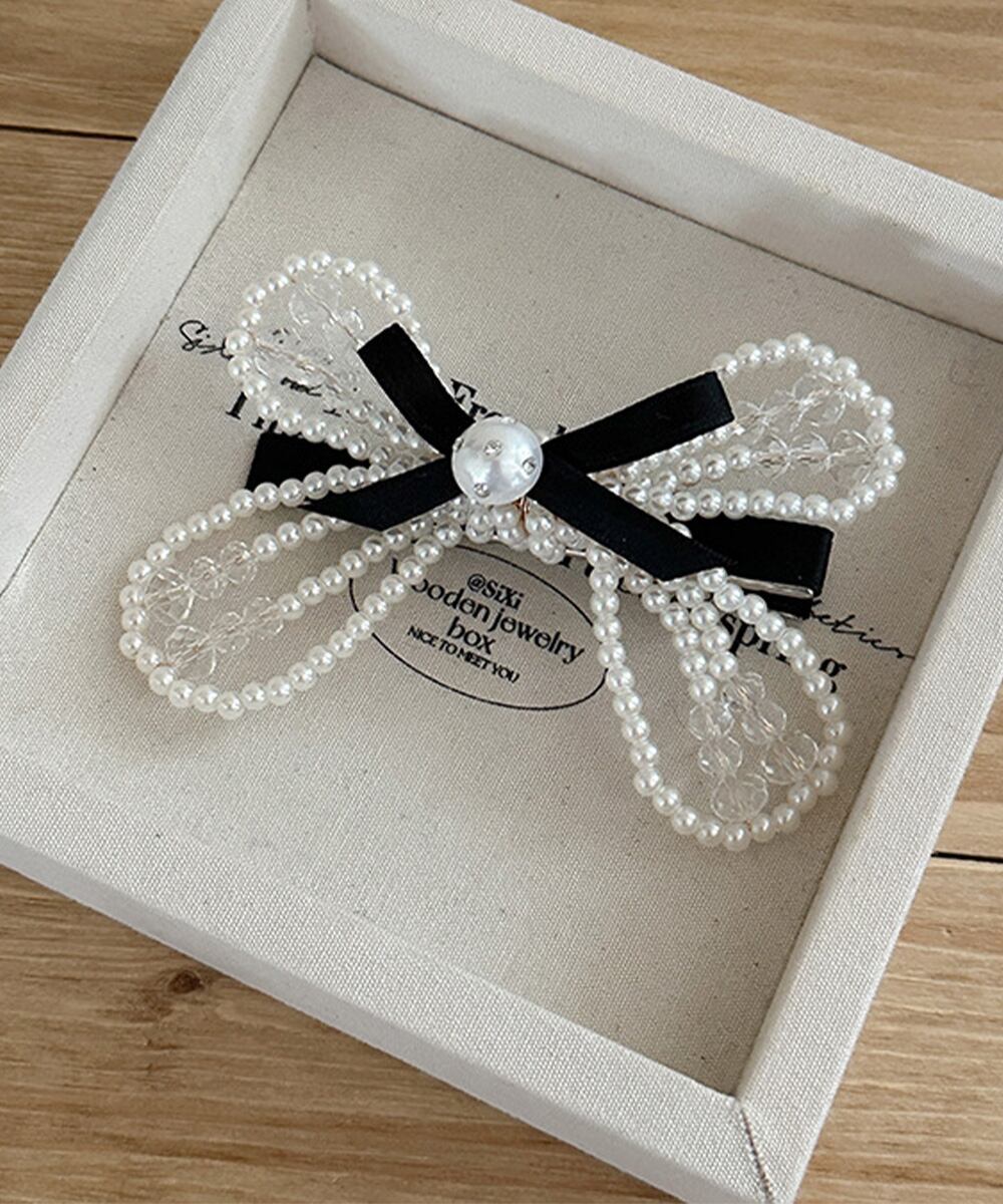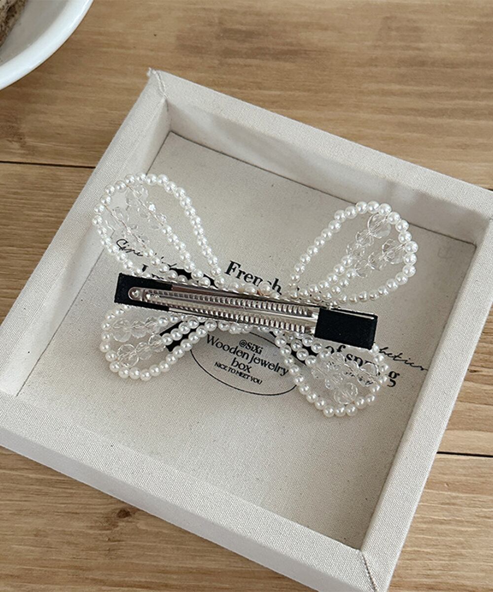 【日本倉庫からの発送】 シュシュ クリップ パール 蝶結び #[99QNSP-014_8700]【送料込み】【250913】