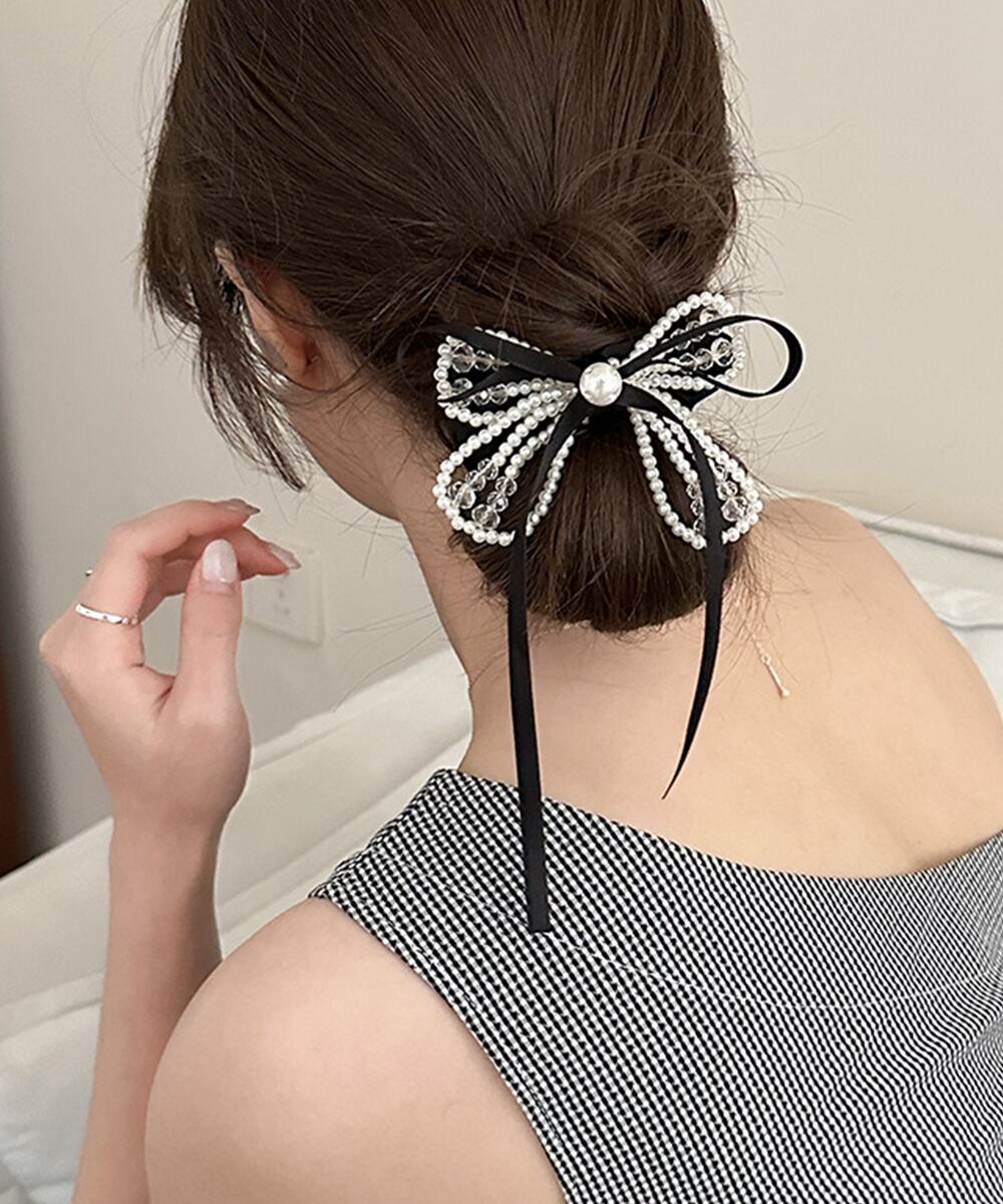 上品なツヤ感のブラックリボン×パールシリーズに、