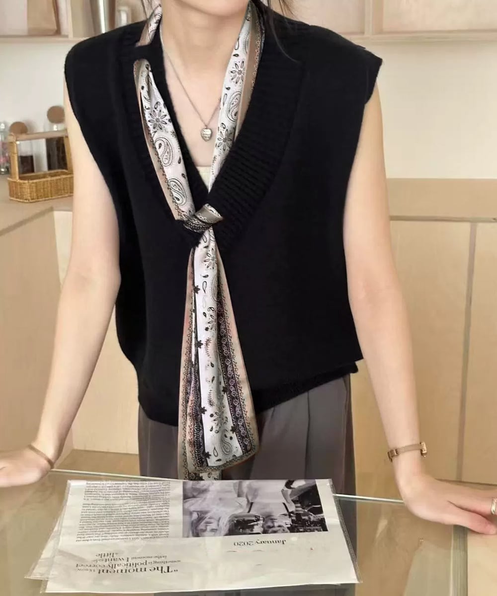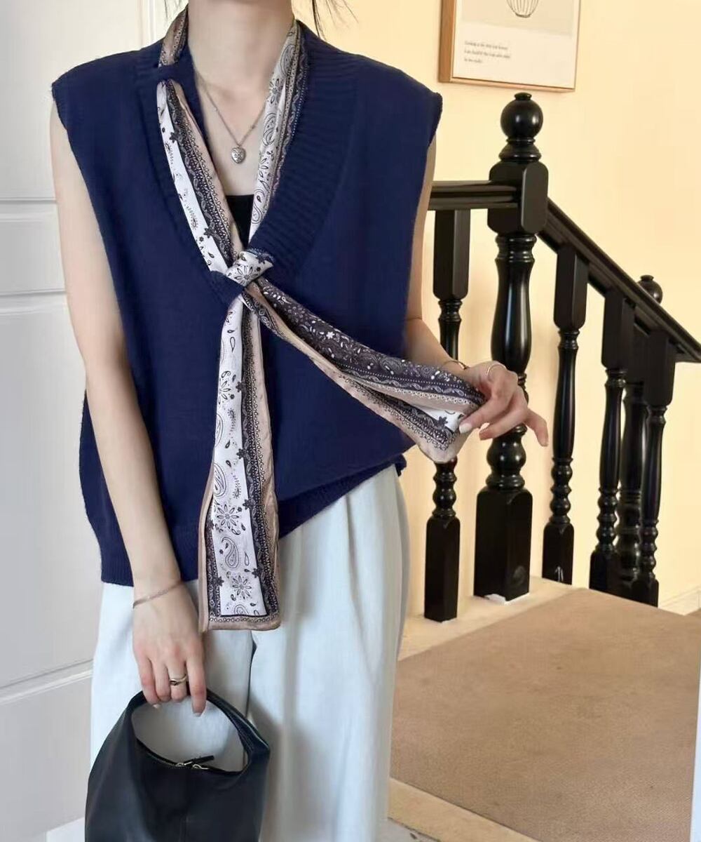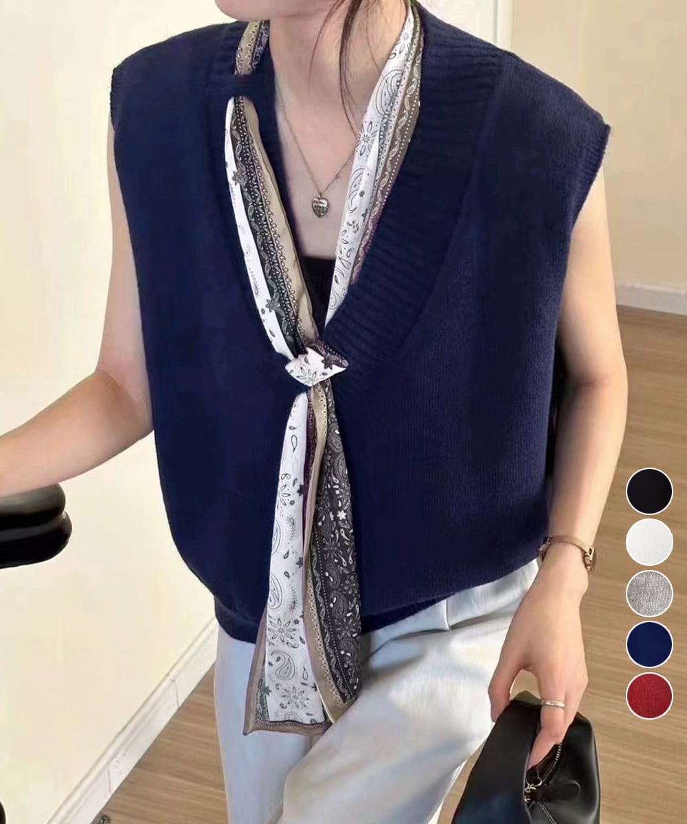 【日本倉庫からの発送】 Vネックニットベストスカーフ付き 韓国風 #[92KN-002_20800]【送料込み】【250913】
