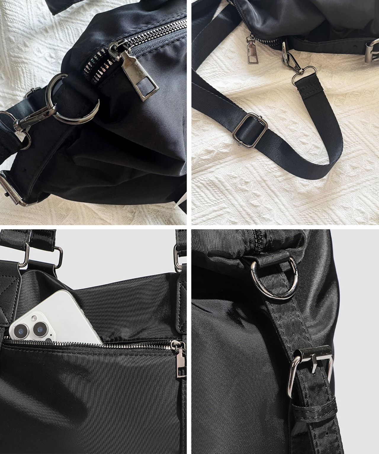 丈夫なナイロン素材を使用した、大容量の2WAYトートバッグ。