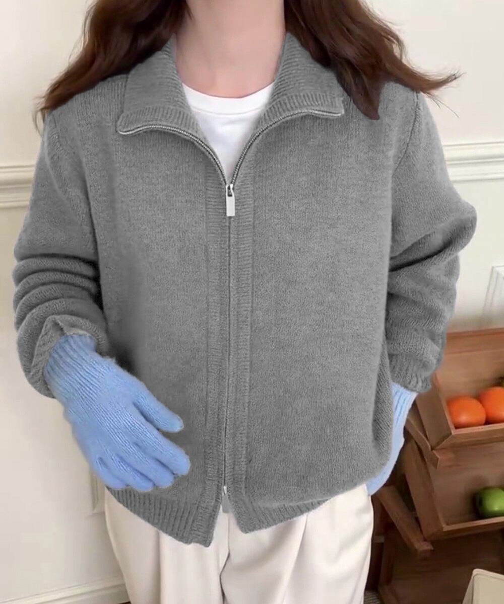 シンプルで着回し力抜群のニットジップアップカーディガン。