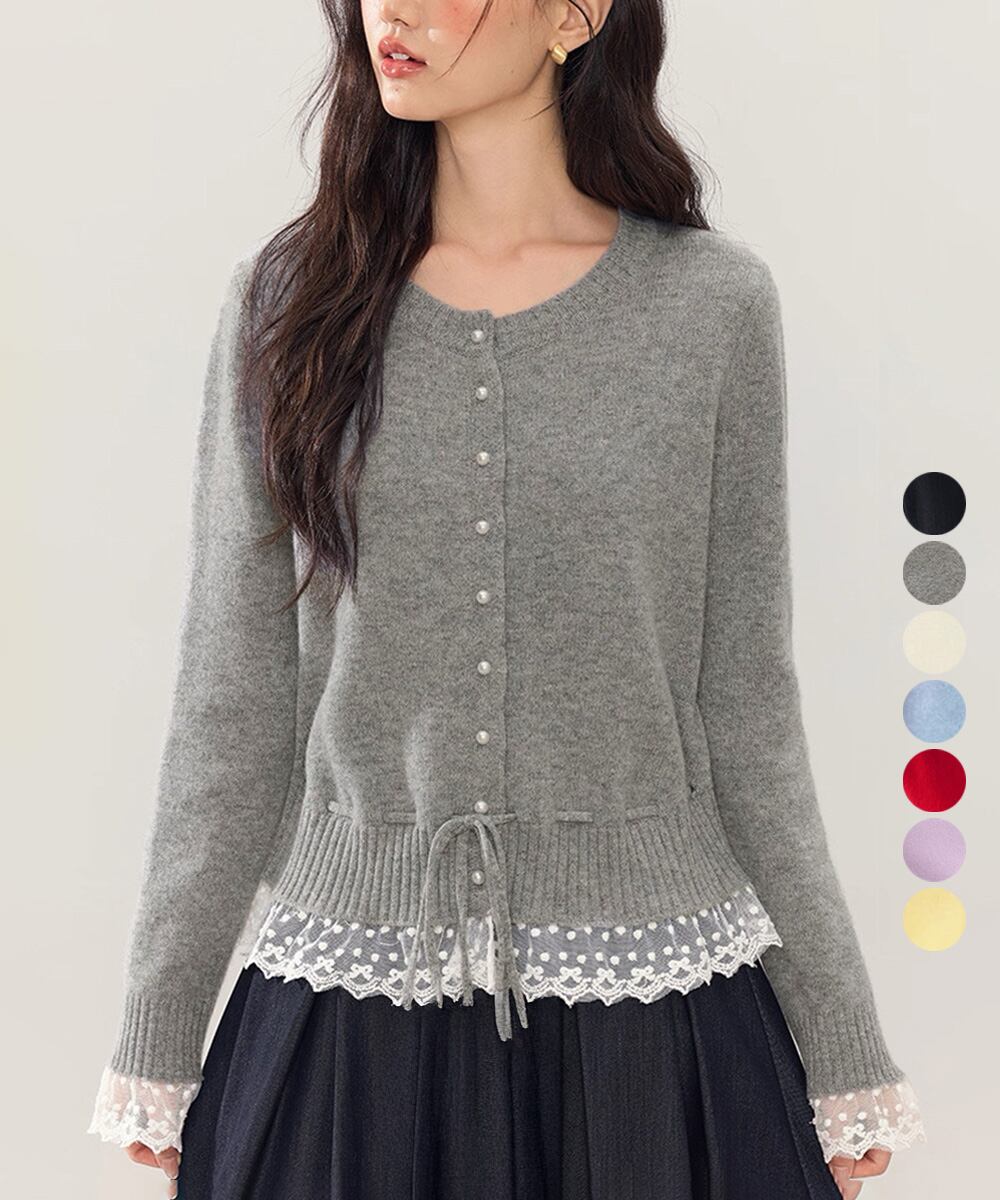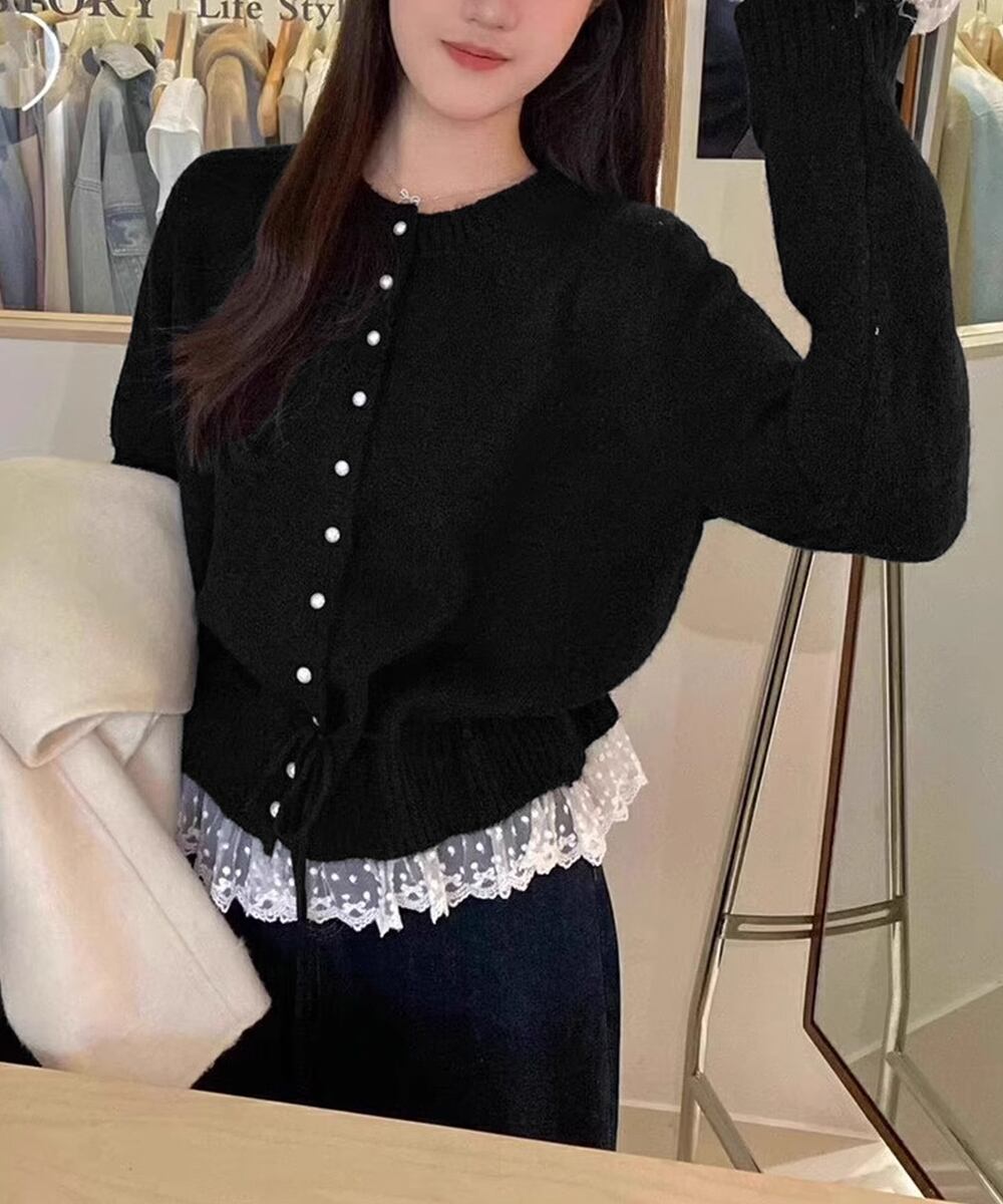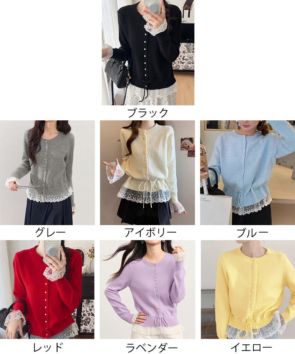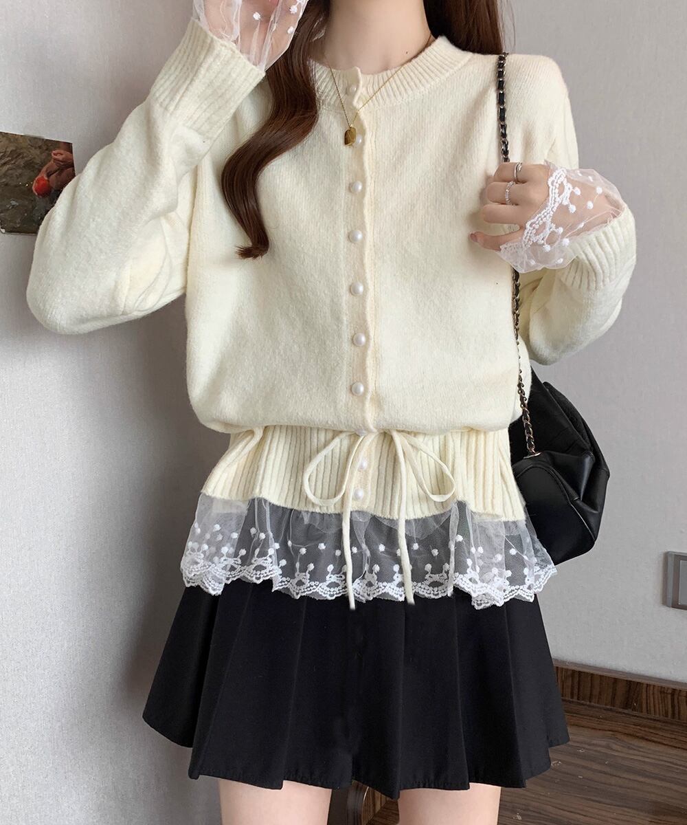 【日本倉庫からの発送】 レース切り替えニットカーディガン長袖秋冬 #[84MEIRJ-022_23800]【送料込み】【260125】