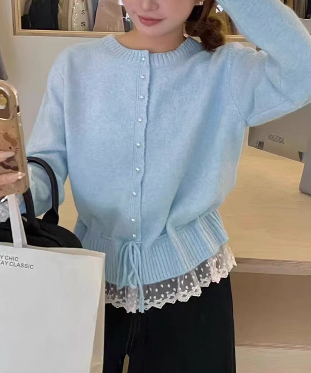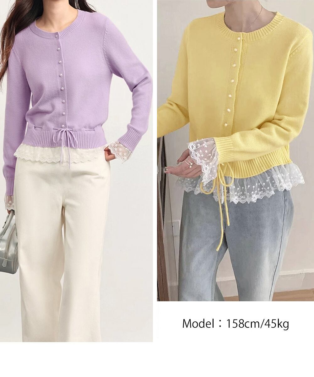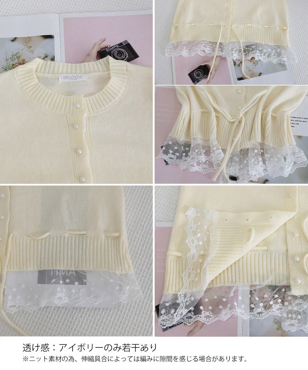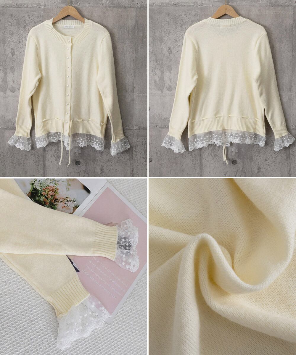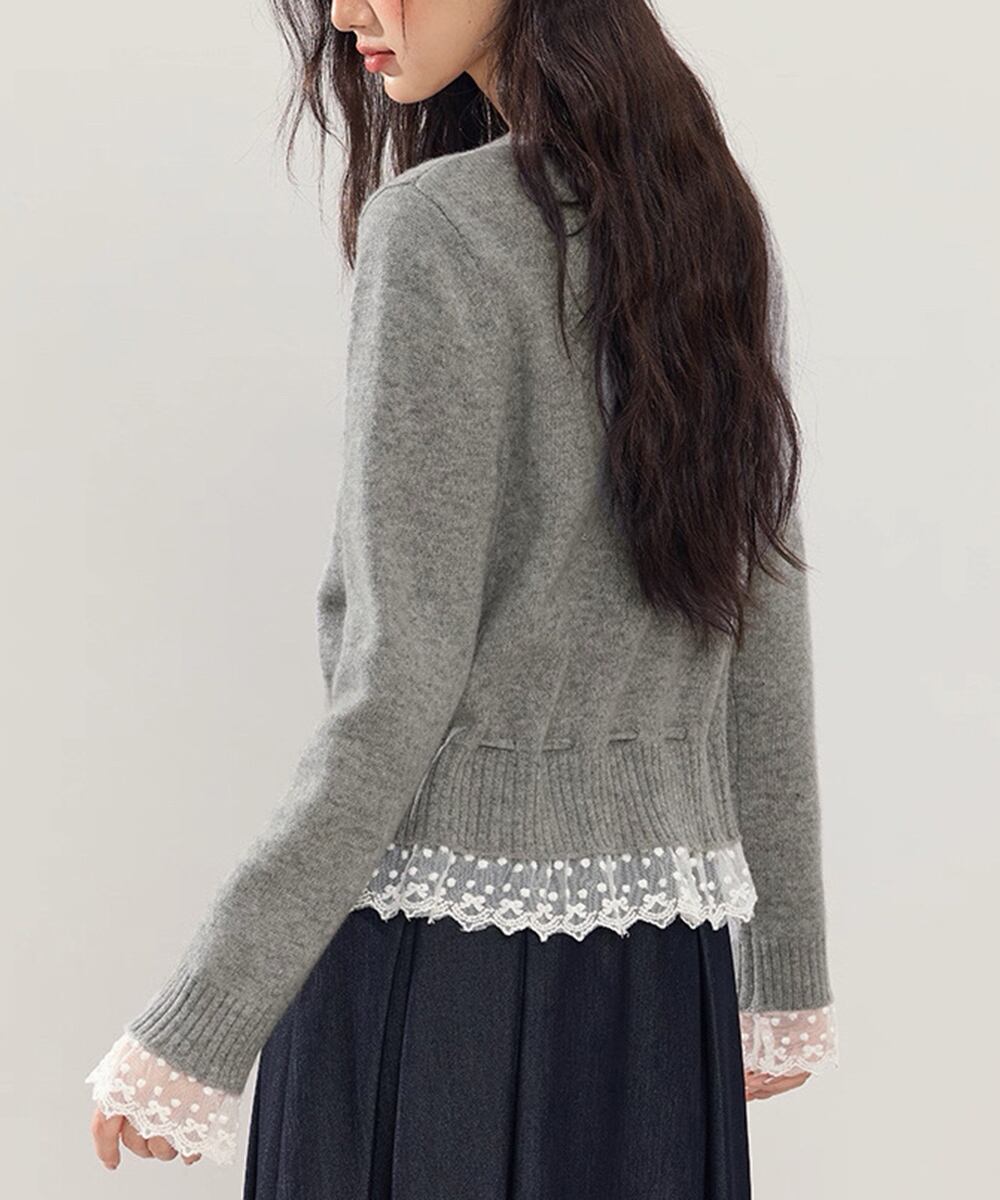 【日本倉庫からの発送】 レース切り替えニットカーディガン長袖秋冬 #[84MEIRJ-022_23800]【送料込み】【260125】