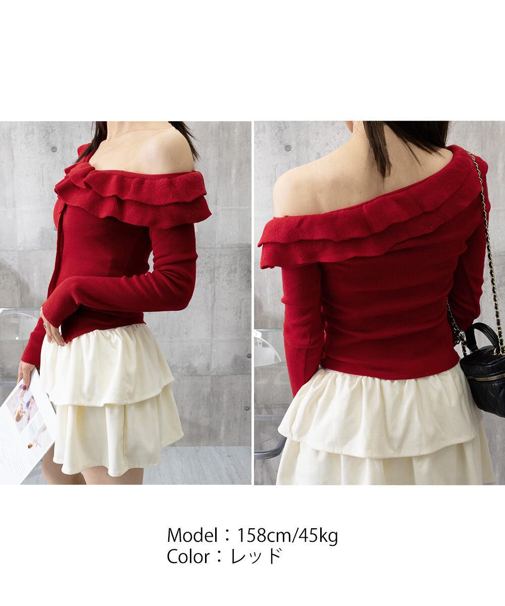 【日本倉庫からの発送】 フリルニットトップス オフショルダー秋服 #[80ZHONGYI-001_17100]【送料込み】【260115】