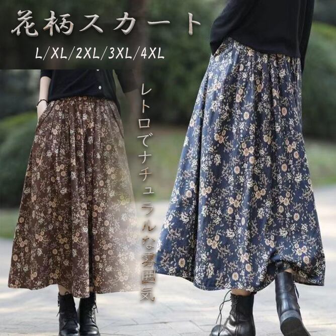 小花柄がレトロでナチュラルな雰囲気 花柄スカート