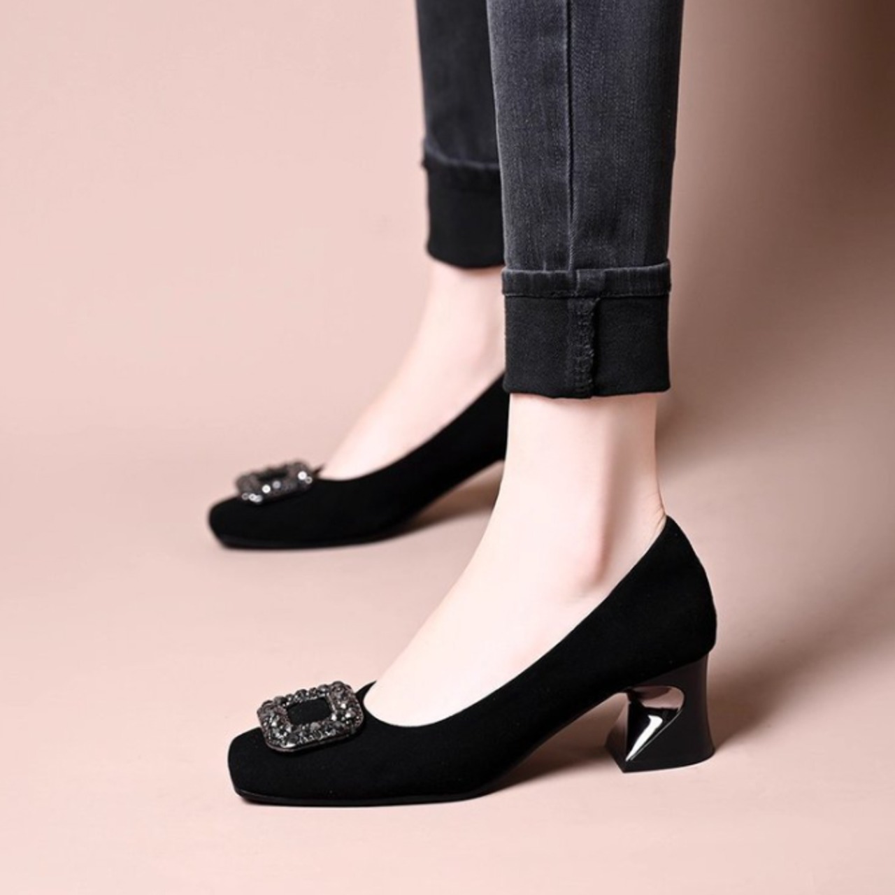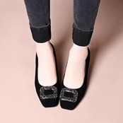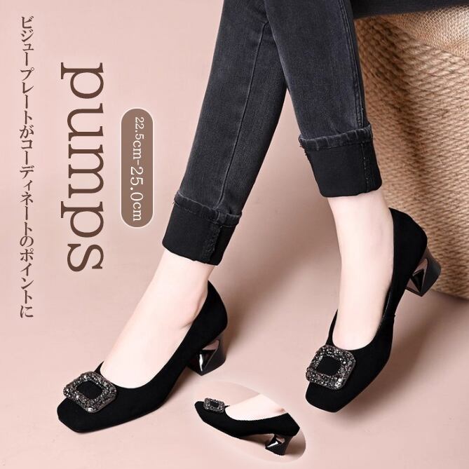 【海外からの取り寄せ】2025新作 レディース パンプス 靴 スクエア ソフト フィット ビジュー 柔らかい きれいめ フラット #[pumps361_18800]【送料込み】【250917】