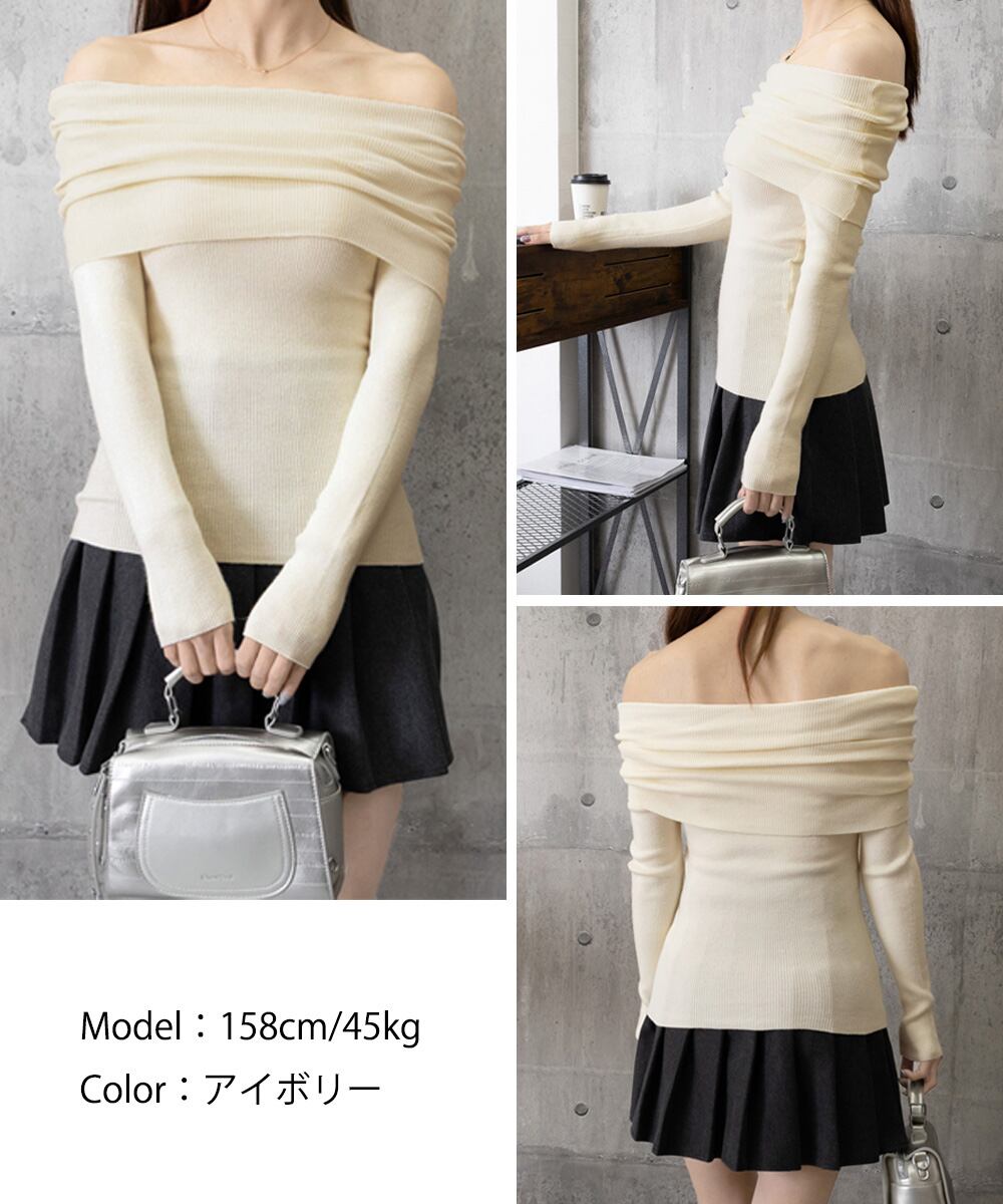 【日本倉庫からの発送】 ワイドオフショルダーニットトップス肩出し #[92KN-005_23100]【送料込み】【251003】