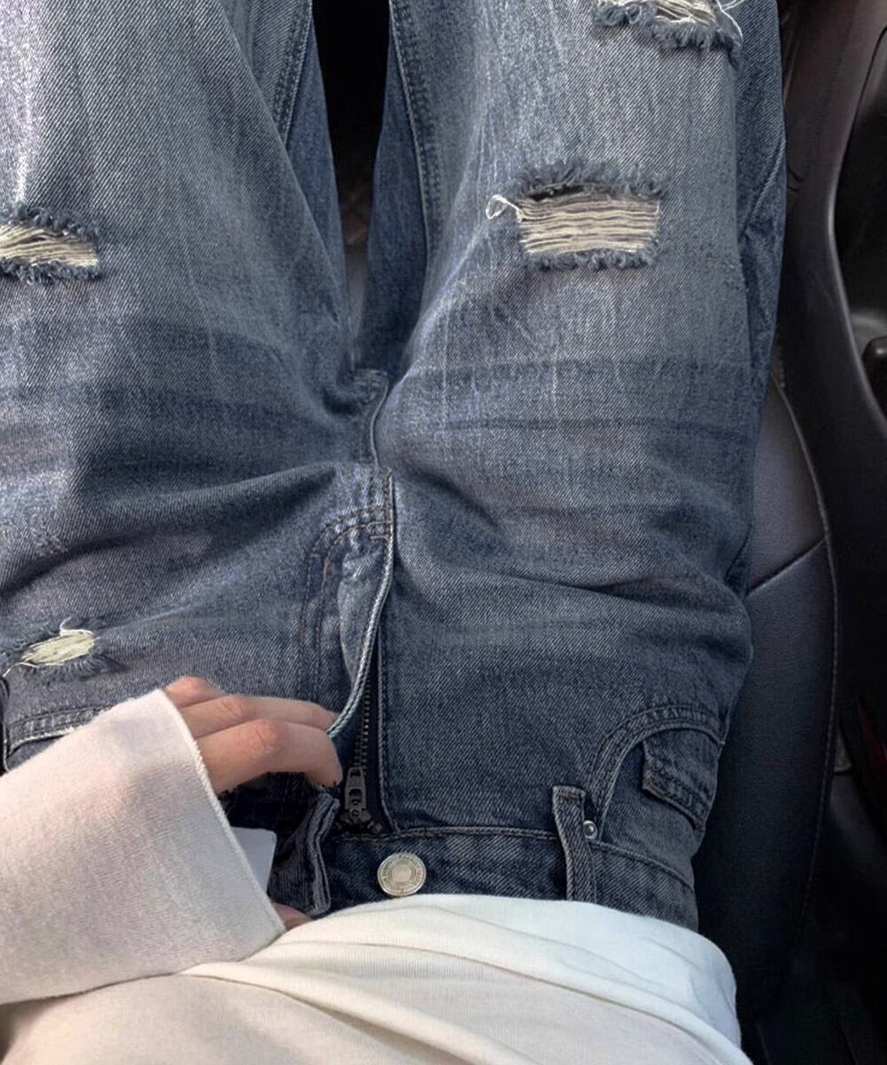 【日本倉庫からの発送】 ダメージデニムパンツ ワイドレッグデニム #[84GZYM-006_29100]【送料込み】【250921】