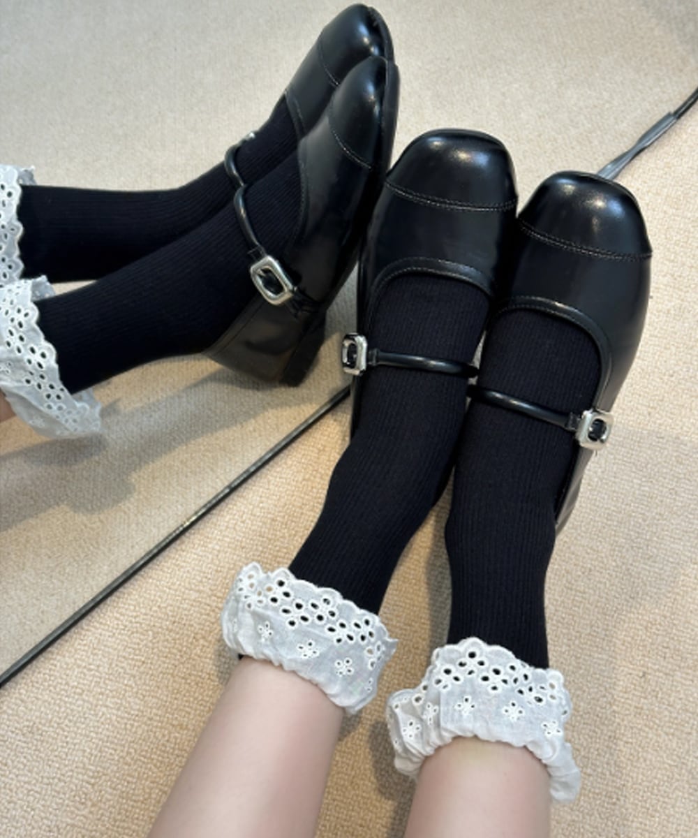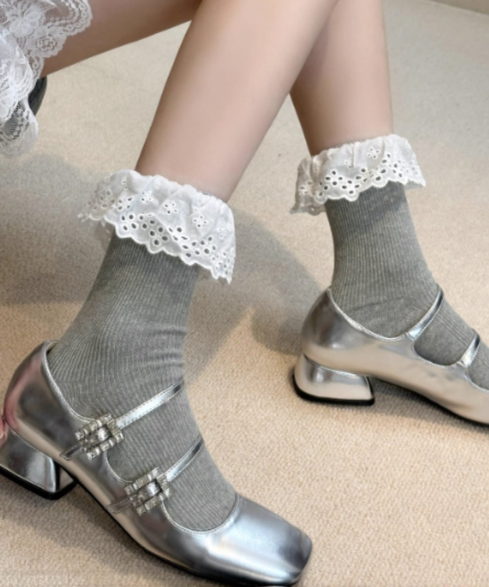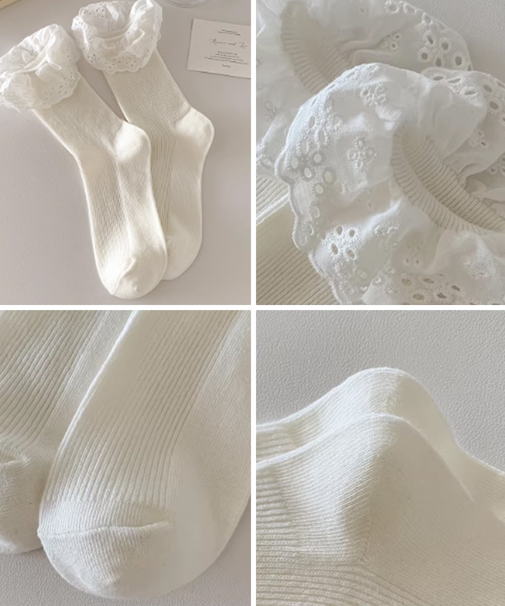 レースのフリルが足元を華やかに演出するミドル丈ソックス。