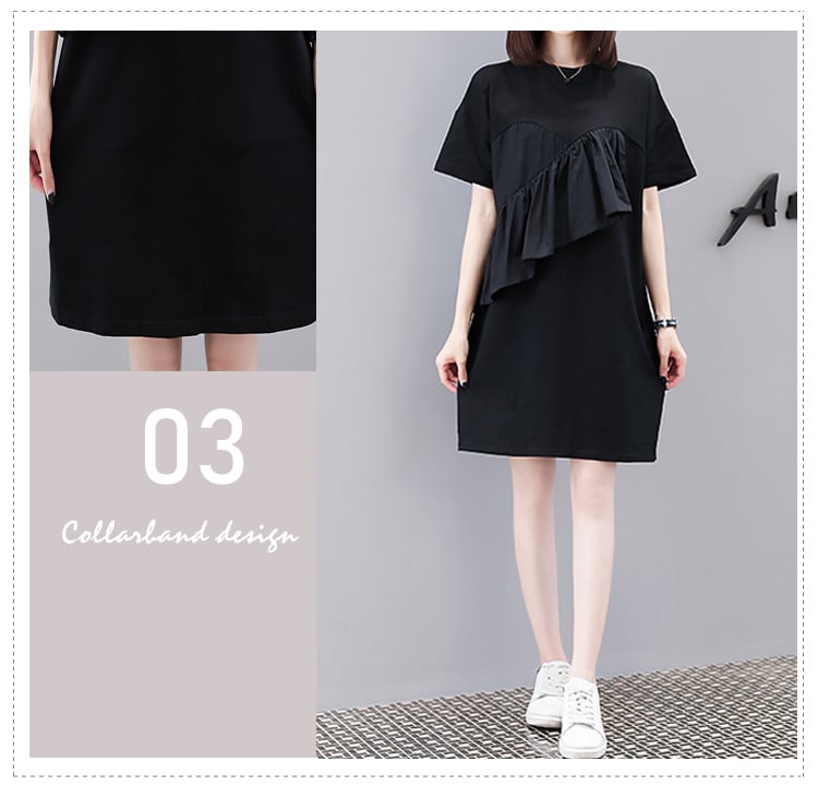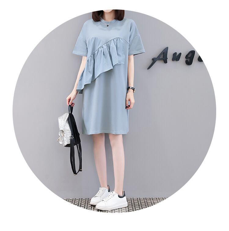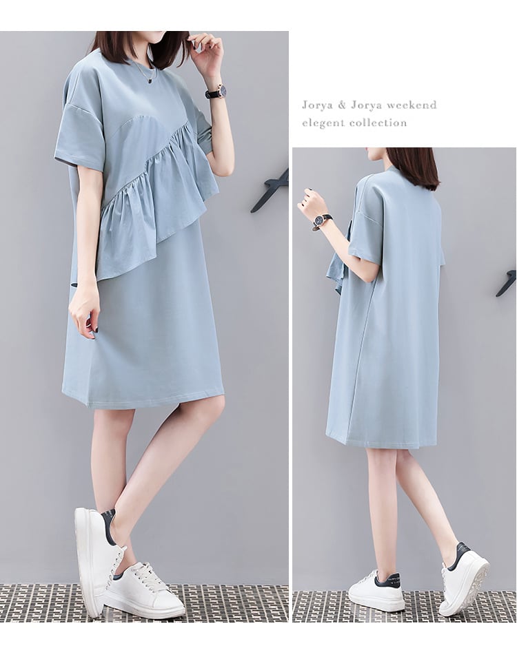 【海外からの取り寄せ】春夏 レディース ドロップショルダー クルーネック Tシャツ フリル 半袖 ワンピース #[onepiece131_17800]【送料込み】【250915】