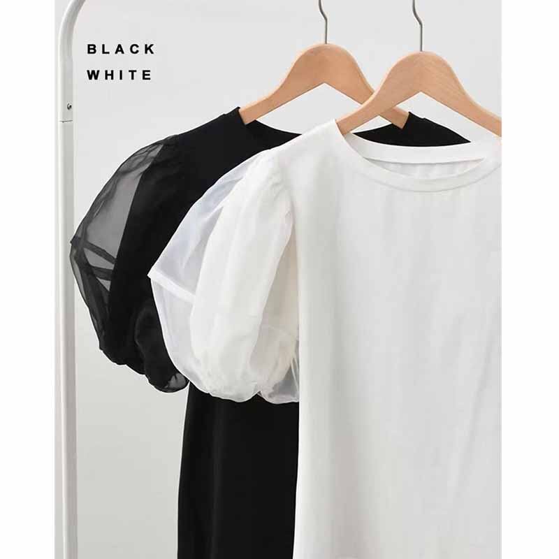 【海外からの取り寄せ】2023新作 レディース トレンド パフスリーブ 半袖 ブラウス 半袖 着回し 可愛い パフ袖 バルーン 白 黒 #[shirt364_14800]【送料込み】【250915】