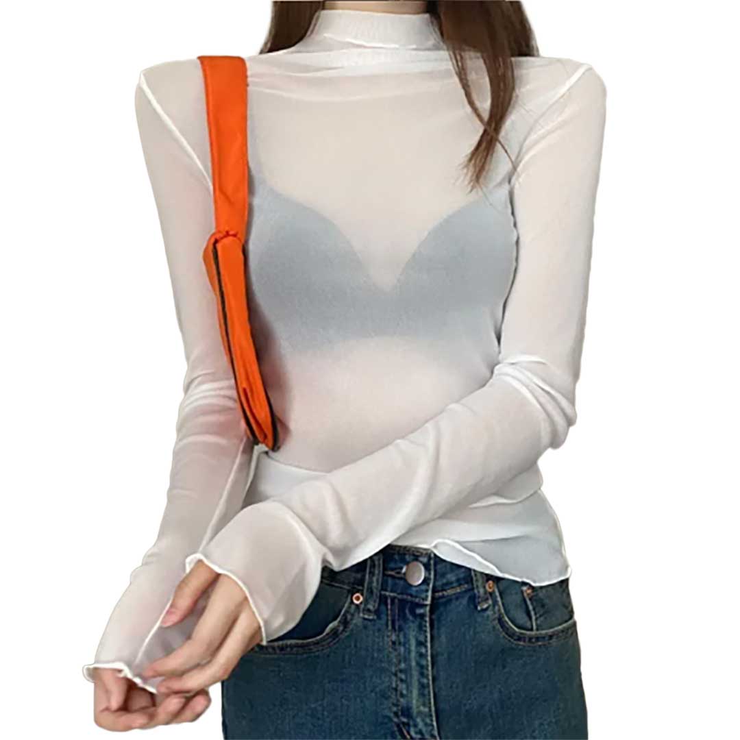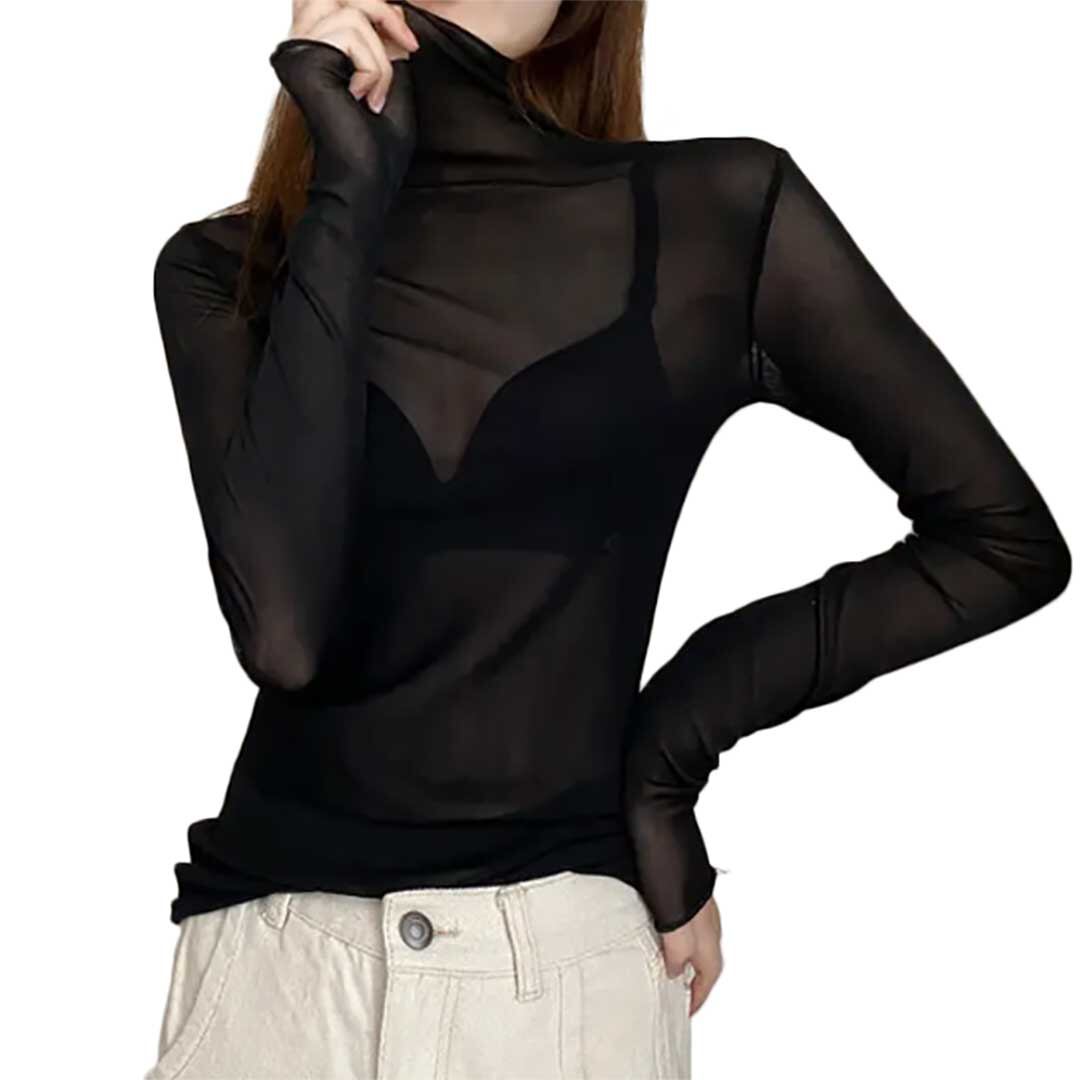 レディース シースルー シアートップス インナー 3カラー MorL スリムTシャツ 長袖 タートルネック #[20241003-5932_14300]【送料込み】【260131】