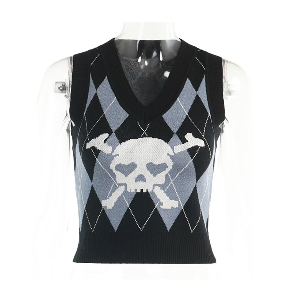 伸縮性のあるおしゃれで可愛いドクロニットベストです。丈はタイトでセクシーに、シャツで重ね着をしてオシャレにコーデしていただけます